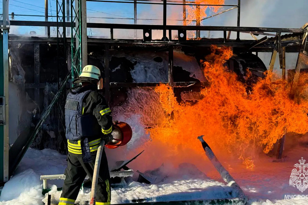 Стало известно, что из-за атаки загорелась заправочная колонка и надземный резервуар с бензином.
