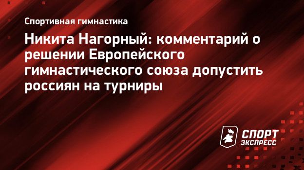 Олимпийский чемпион по спортивной гимнастике Никита Нагорный в комментарии для «СЭ» отреагировал на решение Европейского гимнастического союза (European Gymnastics) допустить российских спортсменов к участию в турнирах организации в нейтральном статусе.
