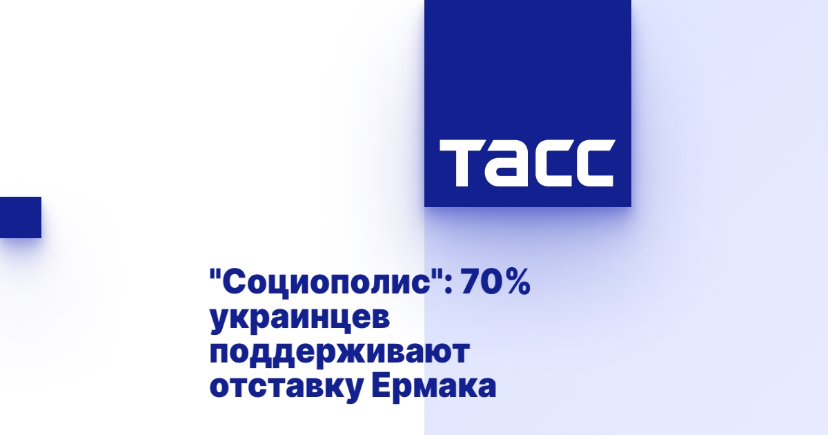 МОСКВА, 28 ноября. /ТАСС/. Отставку Андрея Ермака с должности главы офиса Владимира Зеленского поддержали 70% украинцев на фоне информации о его возможном участии в крупном коррупционном деле. Об этом свидетельствуют результаты опроса исследовательской компании "Социополис".