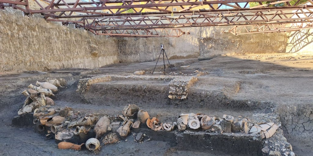 En el solar del citado proyecto inmobiliario del Residencial en Artillería hay vestigios de ese comercio de ánforas. Se ha podido documentar arqueológicamente el esfuerzo que hicieron los romanos, a base de buena ingeniería y arquitectura, para llevar a cabo un proceso de desecado de una zona pantanosa e inundable y trazarla con canales artificiales navegables que estarían en conexión con el puerto, sobre los que se transportaban en barcazas las ánforas repletas de productos como el garum, vino o aceite. Y de Sevilla, a Roma.