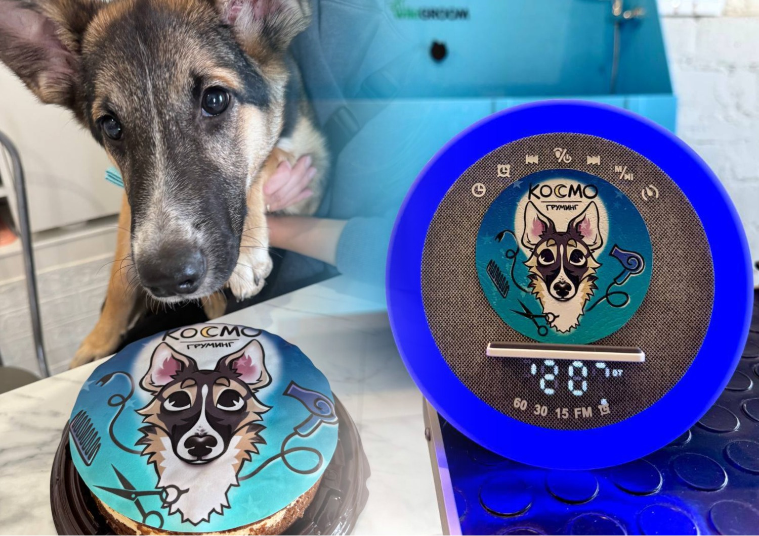 Без подарков Людмила отпустить щенка не смогла и вручила ему игрушки, космический ошейник и лакомства. Космо сейчас ищет нового хозяина, поэтому владелица салона решила подарить будущей семье щенка годовой абонемент на бесплатный груминг.
