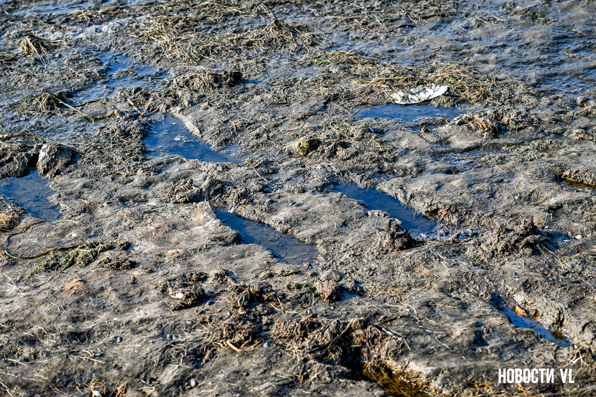 «Весной ещё было относительно чисто, не так критично, – говорит Леонид Иванович. – Краснопёрки, утки. Речка потекла вот такой летом. А сейчас смотрите, что делается. Здесь рыба нерестится – корюшка, камбала, селёдка».