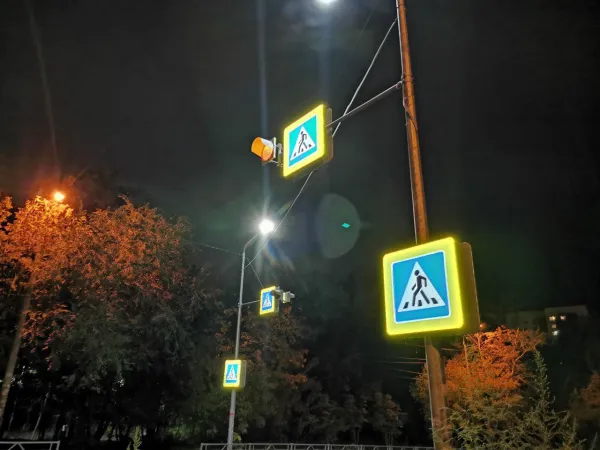 Подрядчик должен будет установить знаки и одноочковые светофоры, нанести разметку со светоотражающими элементами и смонтировать металлические пешеходные ограждения на участке/