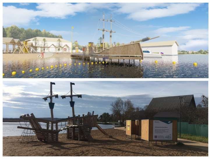 – Визуализация первоначального проекта выполнена проектировочной организацией без учета, что конструкция располагается на реке и во время весеннего ледохода может быть повреждена, – отметили в администрации. – В связи с этим принято решение об установке МАФ «Кораблик» на берегу в удалении от берега. Представленный на фото МАФ «Кораблик» не принят заказчиком и с декабря 2024 года на его месте установлен более качественный МАФ «Кораблик».