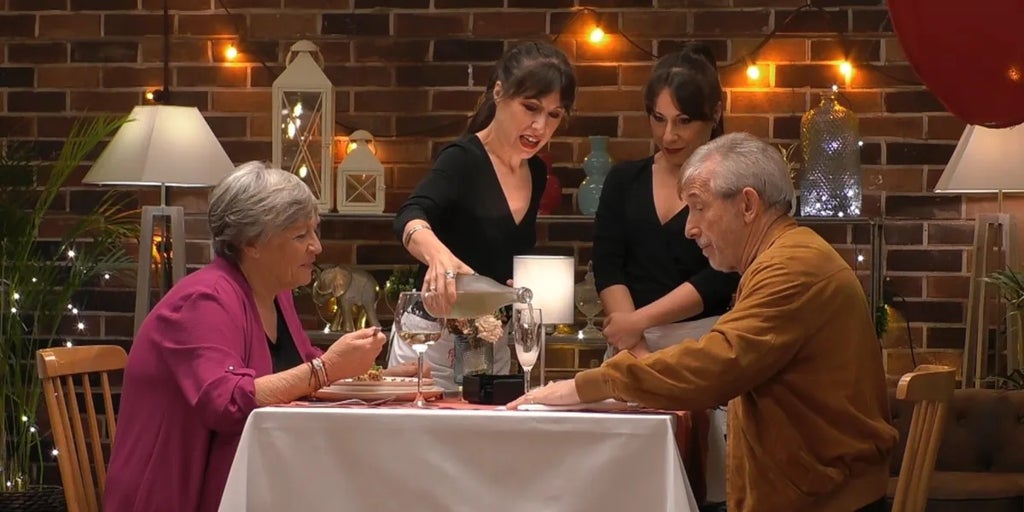 Aunque el momento más incómodo de la velada desde la perspectiva de la soltera estaba aún por llegar. Luis pidió más bebida a Cristina y María Zapata. «A ver, ¿qué te parece el cava? Pruébalo y si no te gusta te ponemos otra cosa», le pedían al jubilado las dos camareras mellizas del restaurante. Así lo hizo él, aunque en su respuesta, que no tuvo nada que ver con el sabor del cava, se tomó demasiadas confianzas preguntándoles si no se habían casado. Las hermanas apuntaron que están solteras y Luis, ni corto ni perezoso, reaccionaba intentando ligar con ellas. «Todo para mí, tengo que comer fuerte entonces. Si yo hago así, ¿venís las dos? ¿Me traes más champán?». «Bueno, así no. A mí me llamas como camarera», lo frenaron ellas como buenamente pudieron. Añadiendo más incomodidad al momento, Luis se despedía de ellas lanzándoles besos al aire.