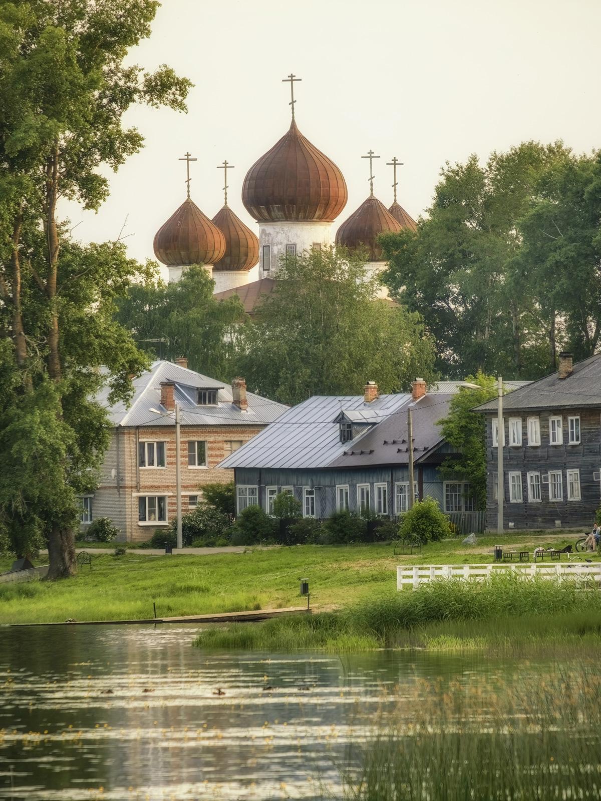 Главное впечатление от Каргополя — это тишина. Не та пустая тишина заброшенных городов и деревень, а глубокая, наполненная смыслом. Белокаменные храмы возвышаются над деревянными домами, создавая неповторимый силуэт северного города.