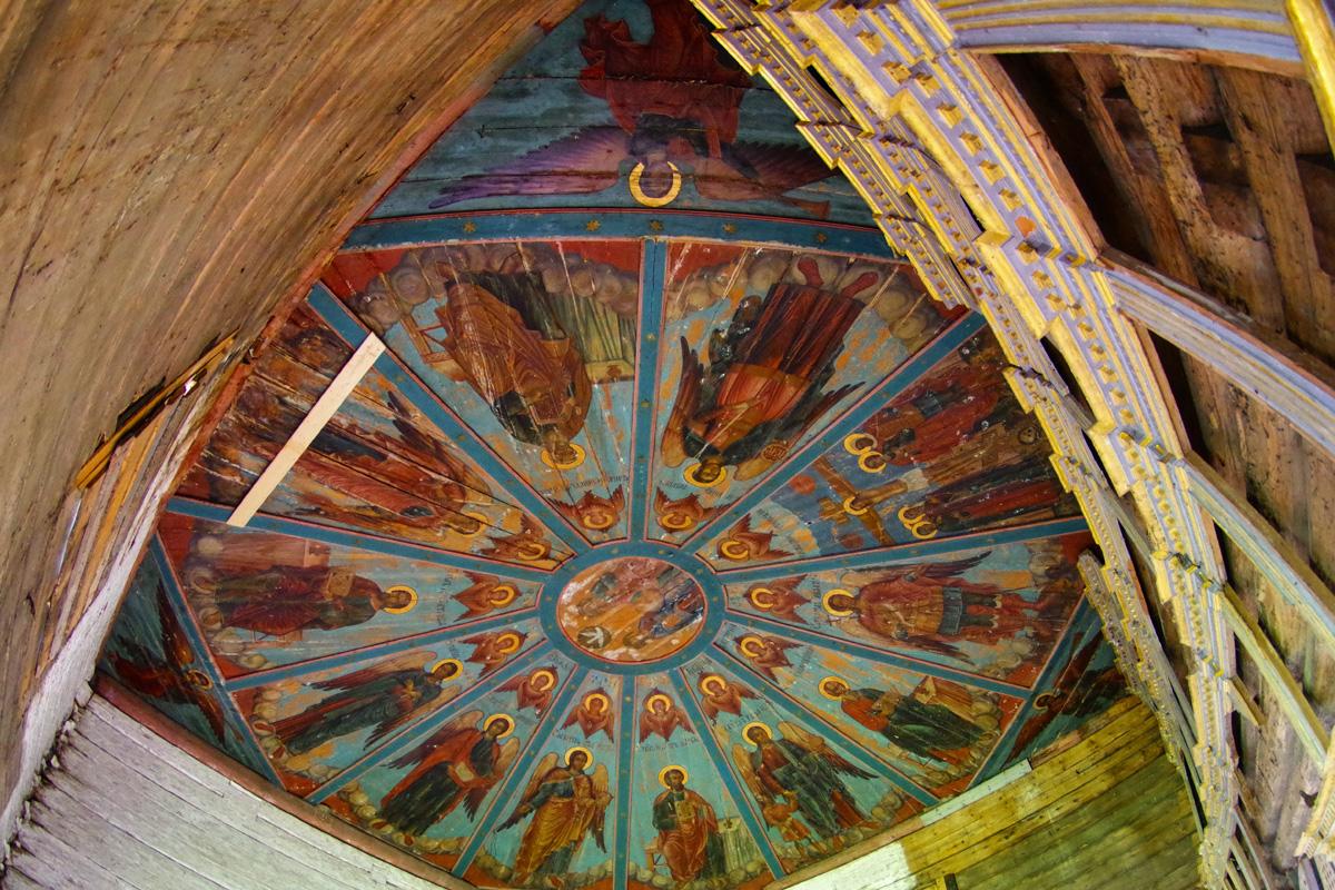 Роспись выполнена онежскими иконописцами артели Ивана Богданова-Карбатовского в конце XVIII века. Краски за два с лишним столетия слегка поблекли, но образы сохранили свою силу и выразительность.
