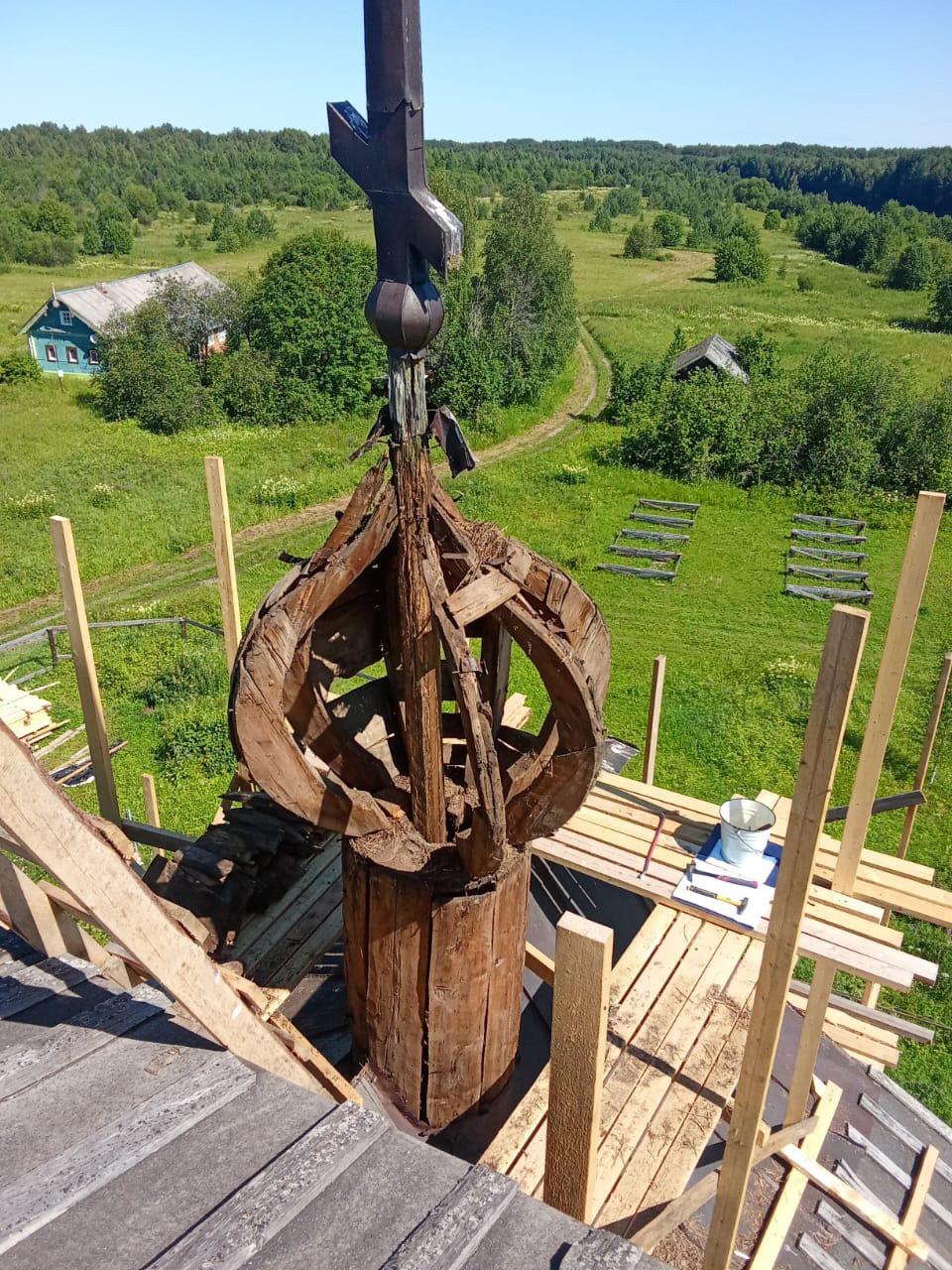 У волонтеров дел здесь немало. В деревне Волосово идет уникальный эксперимент. Добровольцы фонда «Вереница» взялись за реставрацию Никольского храма 1670 года, еще одного образца шатрового зодчества.