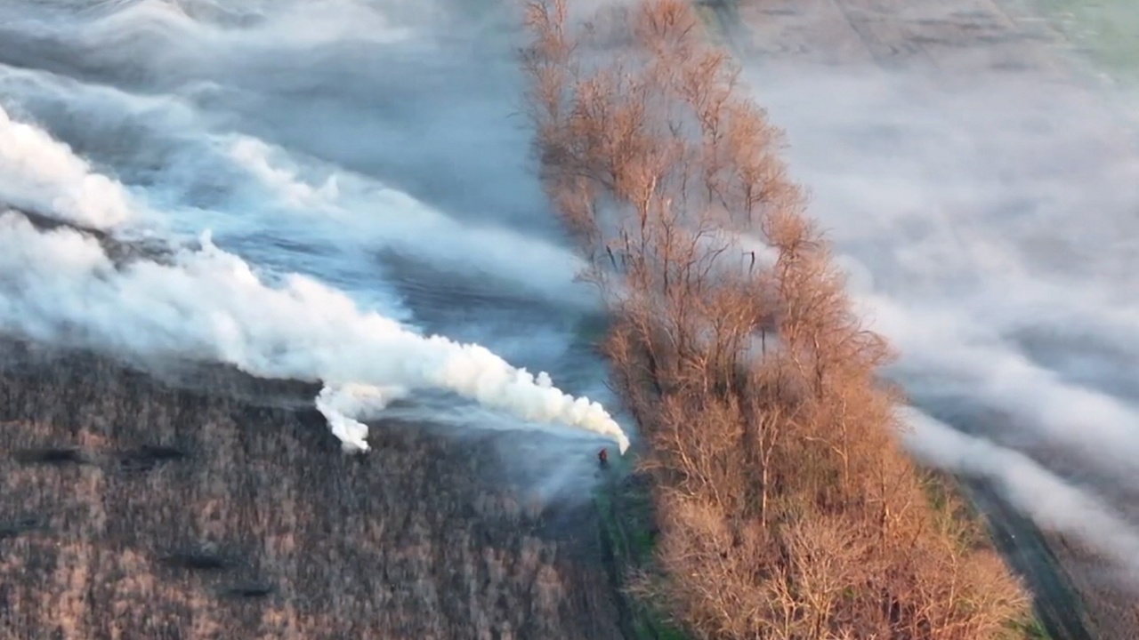 Наземные роботы уже активно используются для эвакуации раненых и постановки дымовых завес. Получается очень эффективно. Огромная пелена тумана вдоль всей лесопосадки. Эпичное видео - как из фильма. Враг, конечно, пытается уничтожить наземные дроны воздушными, и мы в ответ. И это уже настоящее сражение машин. Дронобойня, битва беспилотных систем.