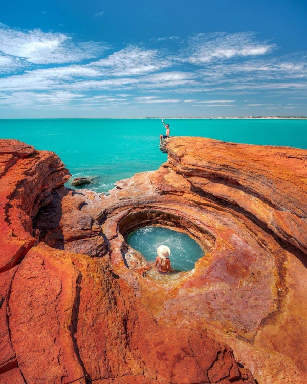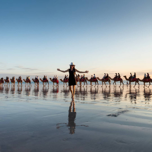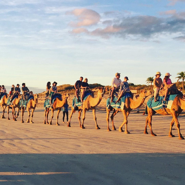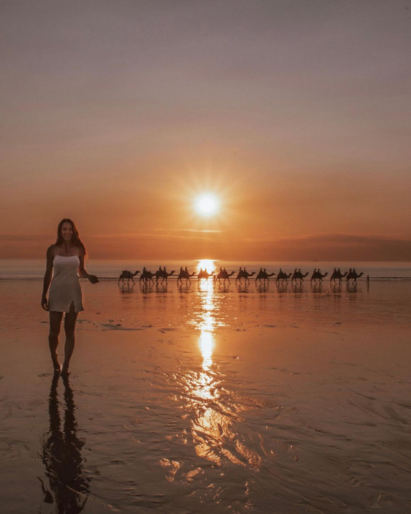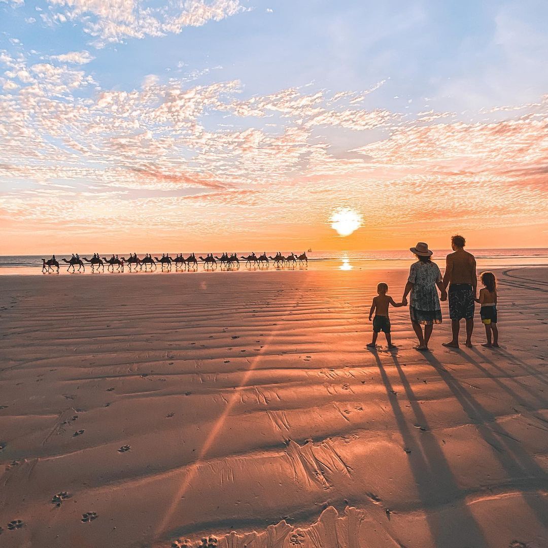 Сонный захолустный городок всего с 4402 жителями на северном побережье Западной Австралии, который находится в 24 часах езды от Перта и в 19 часах езды от Дарвина является одним из самых изолированных в стране, ставший в последние годы оживленным пляжным курортом.Здесь посетители могут полюбоваться одним из "лучших закатов в Австралии" над нетронутыми песками Кейбл-Бич или прокатиться на верблюдах вдоль берега.