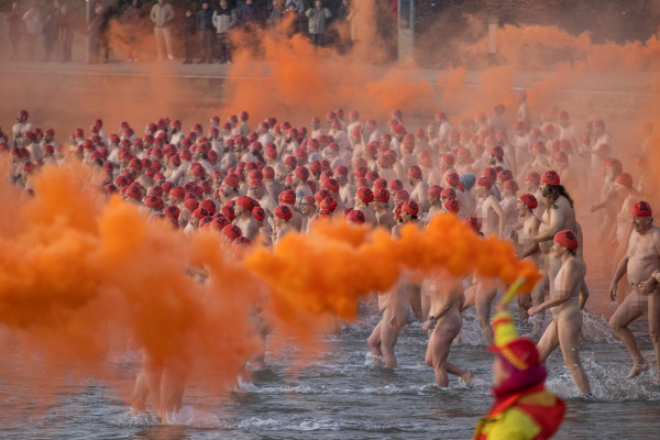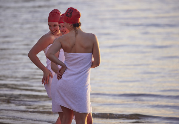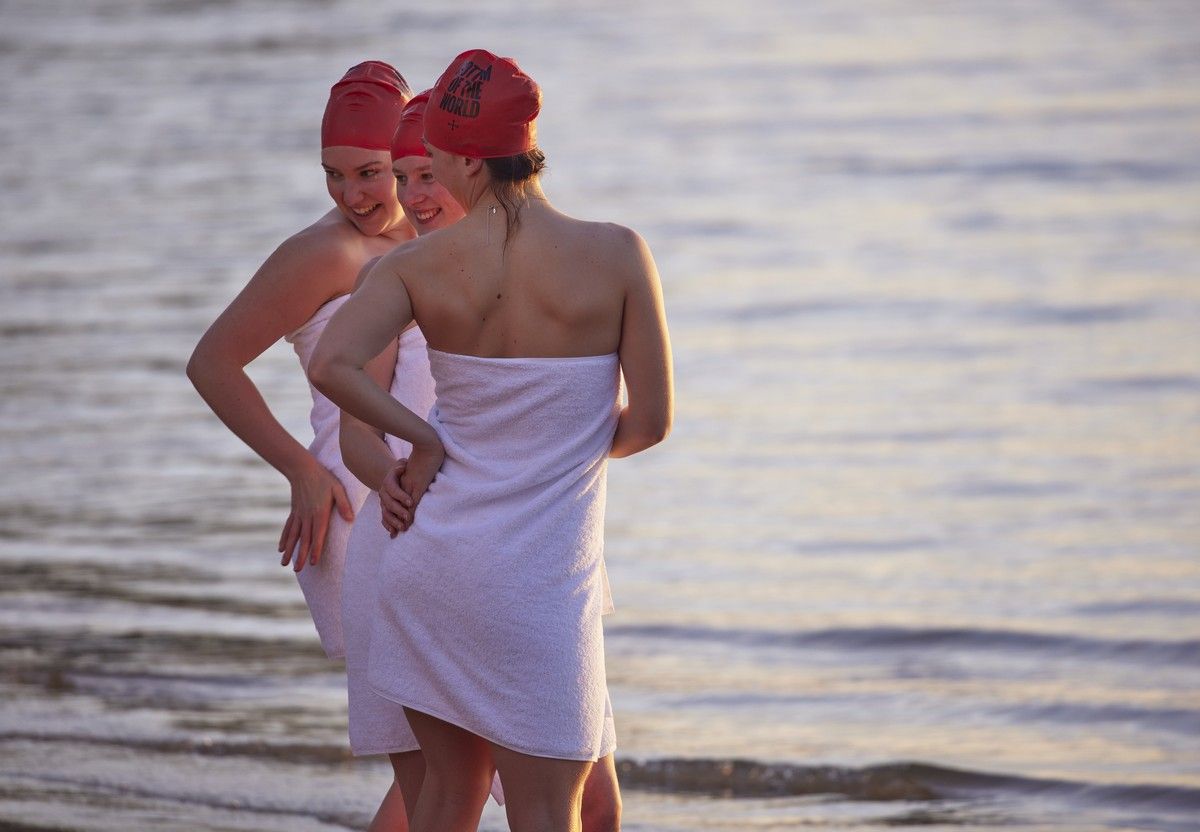 В этом году из-за ограничений Covid-19 число участников было ограничено 1 500.Это количество было набрано в течение получаса после начала регистрации.На случай отмены мероприятия был составлен лист ожидания.Брэди, 31 год, из Брисбена, говорит: "Когда вы входите в воду, вы просто вбегаете с криком. Вы не можете по-настоящему почувствовать холод, пока не станет слишком поздно.- Кожу начинает жечь. И она действительно сжимается."