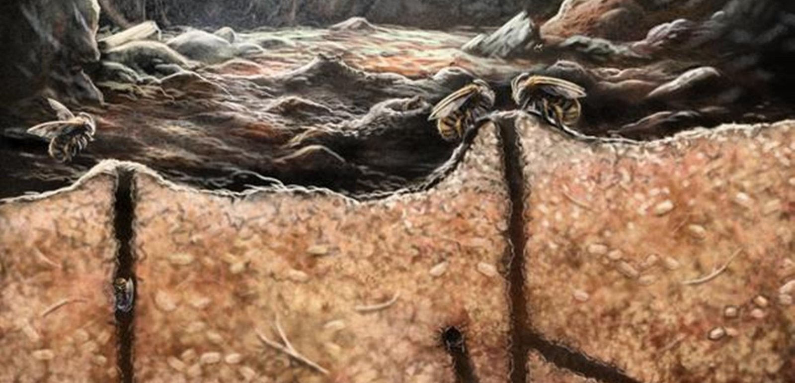 Предполагается, что пчелы использовали эти кости, смешивая грязь со слюной для создания крошечных гнездовых камер, каждая из которых была меньше ластика на карандаше. В некоторых из таких гнезд были обнаружены зерна окаменевшей пыльцы — запас пищи для будущих личинок.