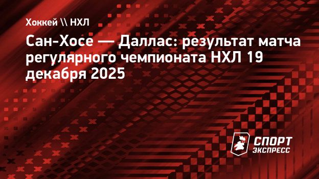 «Сан-Хосе» проиграл после трех побед подряд. Он занимает восьмое место в Западной конференции (37 очков после 35 матчей). «Даллас» (51 очко после 35 игр) расположился на втором месте.
