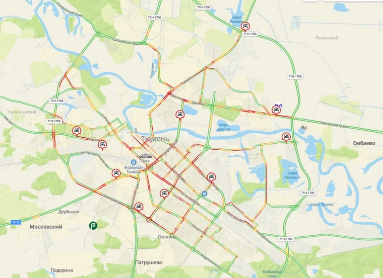 В Тюмени зафиксированы пробки в максимальные десять баллов. Данные представлены на сервиса «Дубльгис».