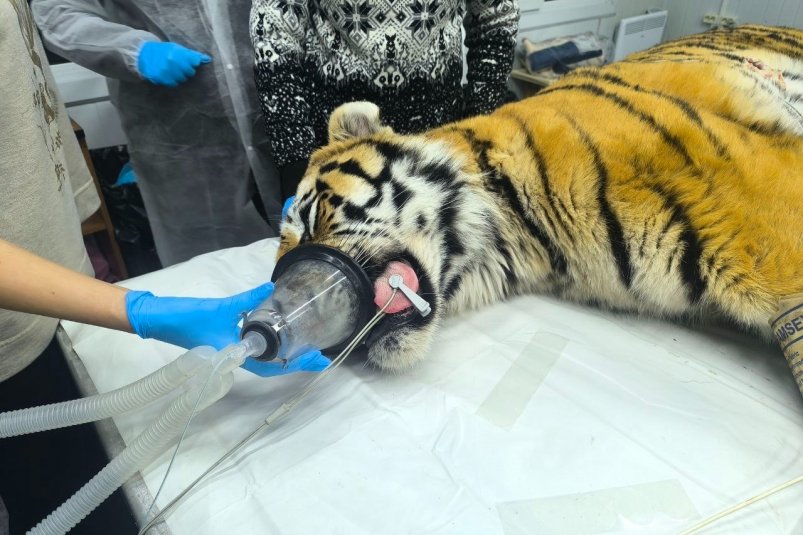 "Тигру надели спутниковый ошейник для дальнейшего мониторинга, и сегодня (27 декабря — прим. ред.) состоится его выпуск в отдаленную от населенных пунктов местность", — говорится в сообщении Центра.