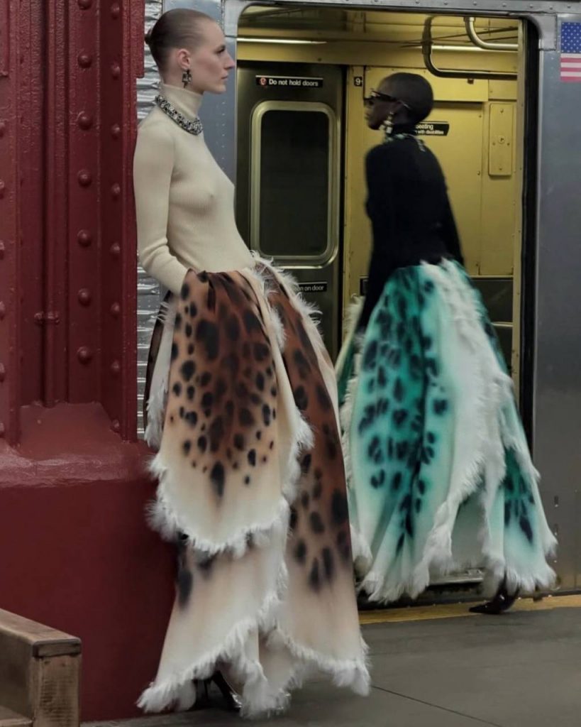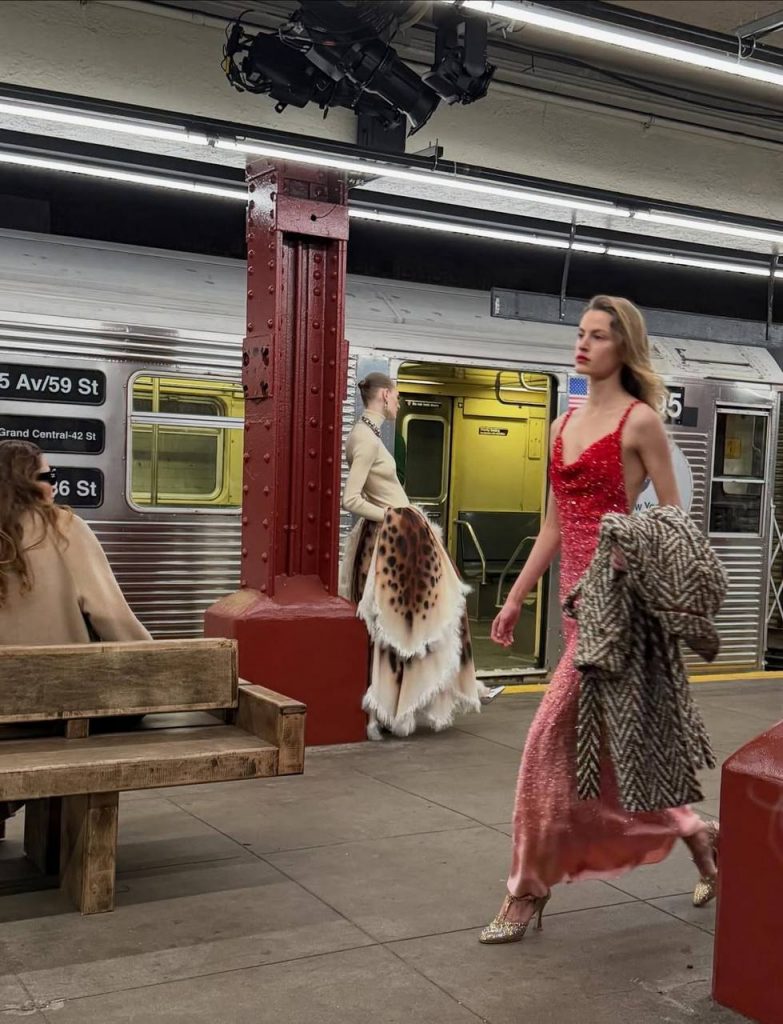 Матье Блази представил свою вторую коллекцию для Chanel на закрытой станции метро Bowery – месте, которое само по себе стало легендарным в Нью-Йорке. По словам дизайнера, метро символизирует город без иерархий, где пересекаются самые разные жители. «Мне нравилась идея показа, где все нелинейно и случайно, как на пути на работу, когда не знаешь, что будет за углом», – отметил Блази. И хотя девчонка Chanel вряд ли выберет метро как транспорт, именно здесь решено было провести шоу, спустив it-girls с небес под землю. Платформа превратилась в кинематографическую сцену с шумами поездов, джазовой музыкой и аудиозаписями из фильма «Часы». Станцию Bowery уже использовали и другие дизайнеры, например, Том Форд проводил здесь свое шоу в 2020 году.