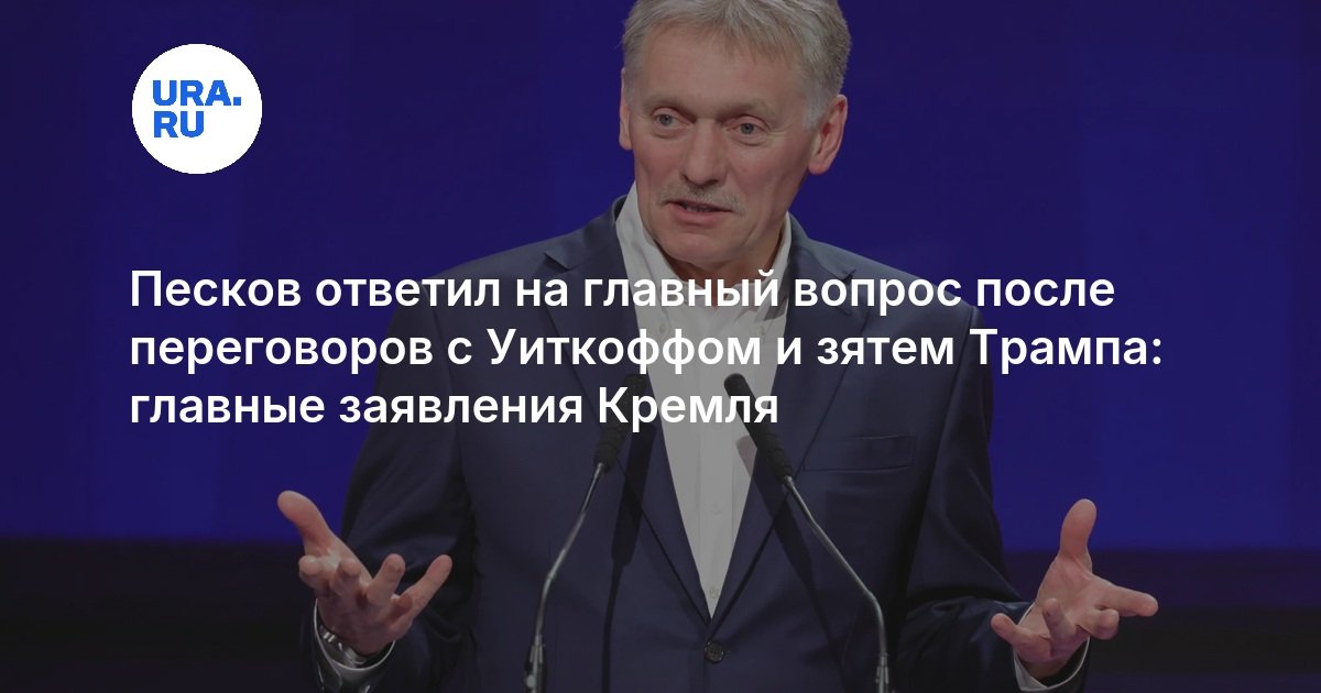 Такое заявление Пескова прозвучало на фоне встречи, которая состоялась накануне. В ней приняли участие президент РФ Владимир Путин, спецпосланник главы Белого дома Дональда Трампа Стив Уиткофф и зять американского лидера Джаред Кушнер. После переговоров к прессе вышел помощник главы российского государства Юрий Ушаков, который заявил, что стороны договорились не оглашать результаты беседы. Эти и другие заявления представителя Кремля со встречи с журналистами 3 декабря — в материале URA.RU.