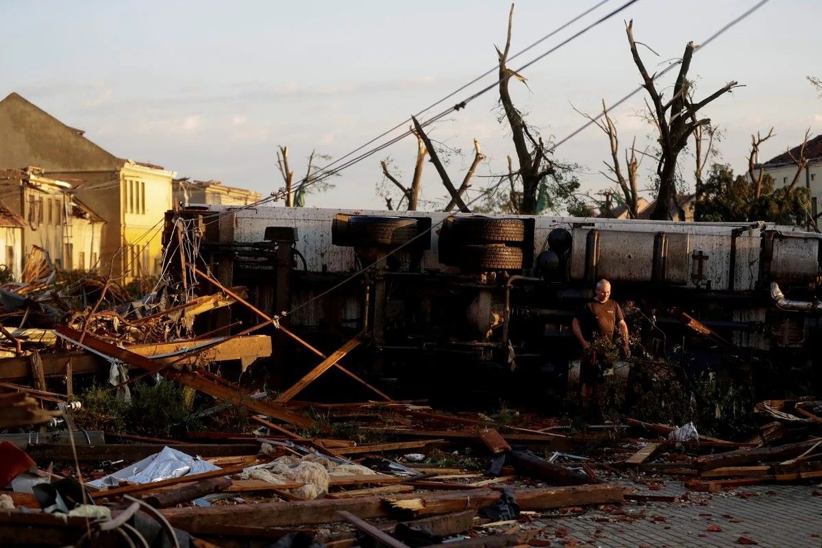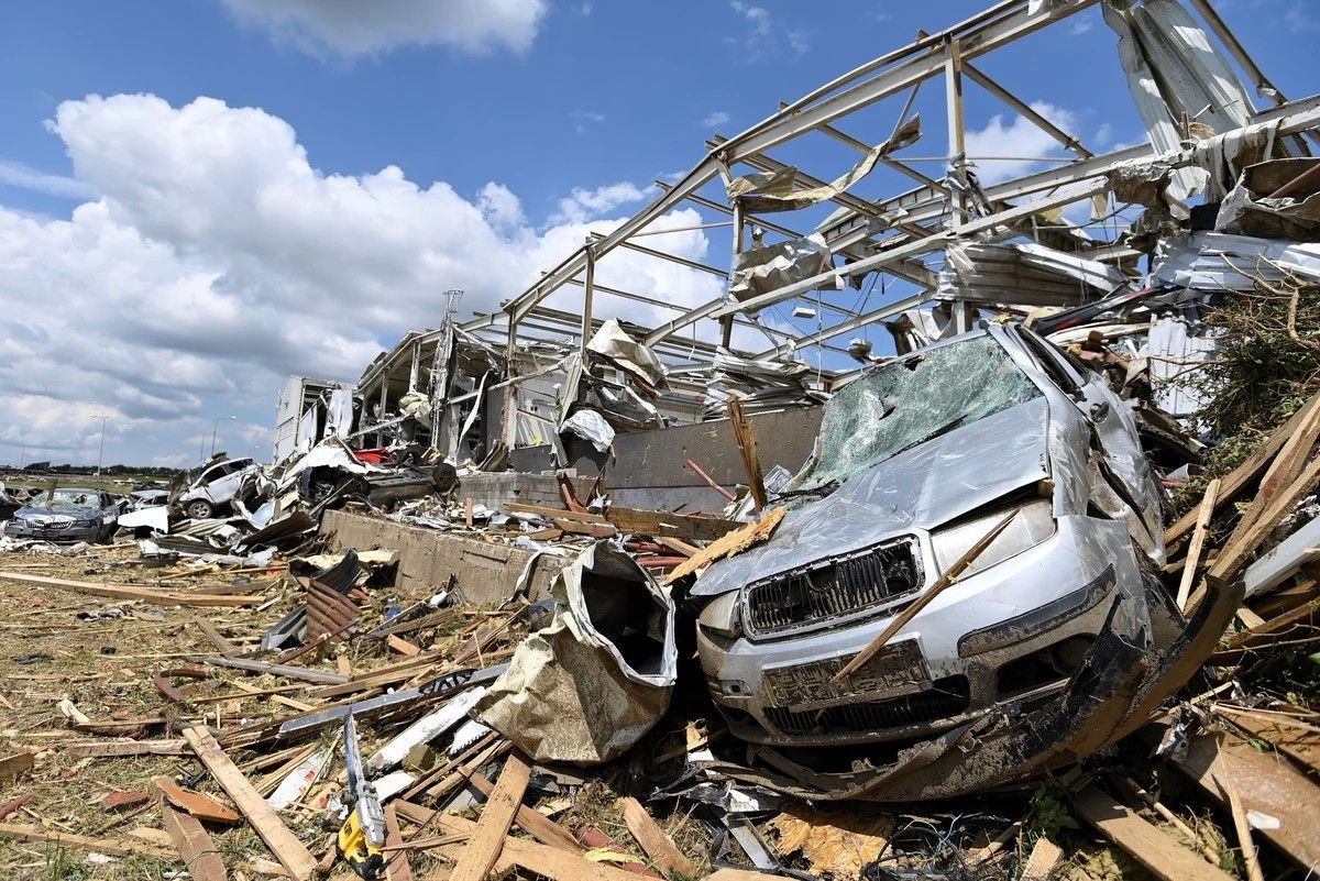 Мощный торнадо обрушился вечером 24 июня на Южноморавский край Чехии. Стихия имела четвертую степень из пяти, порывы ветра достигали 332 км/ч, а размер града достигал 10 сантиметров. Смерч разрушил дома, повалил деревья и линии электропередач, уничтожил сотни автомобилей. Наиболее пострадавшие районы выглядят как зона боевых действий. Под завалами зданий находятся сотни граждан. Пока известно о пяти погибших и 300 пострадавших.