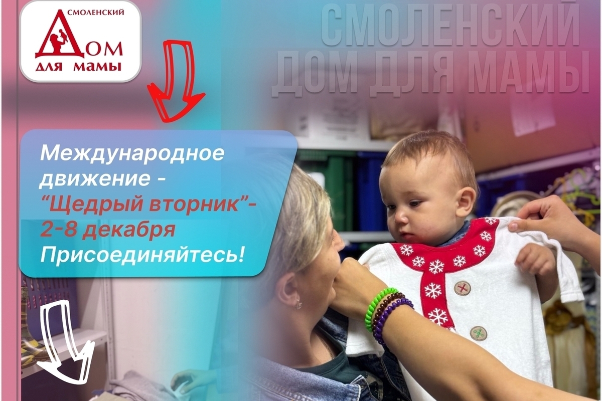Щедрый вторник — это международная акция, охватывающая сотни стран и тысячи людей. В этом году она проводится в Смоленском доме для Мамы 2 декабря и продлится по 8 декабря.