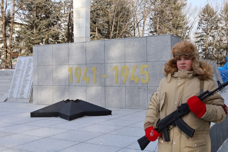EAOMedia, 3 декабря. Церемония возложения цветов к Вечному огню состоялась в Биробиджане сегодня, в День Неизвестного Солдата. Впервые после завершения ремонтных работ мероприятие прошло в преобразившемся сквере Победы, который стал более благоустроенным и современным, сообщает пресс-служба мэрии города.