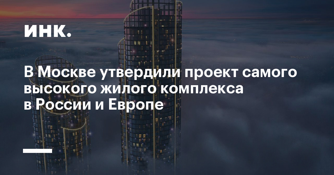 В Москве официально согласовано архитектурно-градостроительное решение самого высокого в России и Европе жилого комплекса. Проект, который реализует компания «Страна Девелопмент», включает строительство двух футуристических башен в районе «Москва-Сити». Самая высокая из них достигнет 384 метров. Подробности — в распоряжении «Инка».