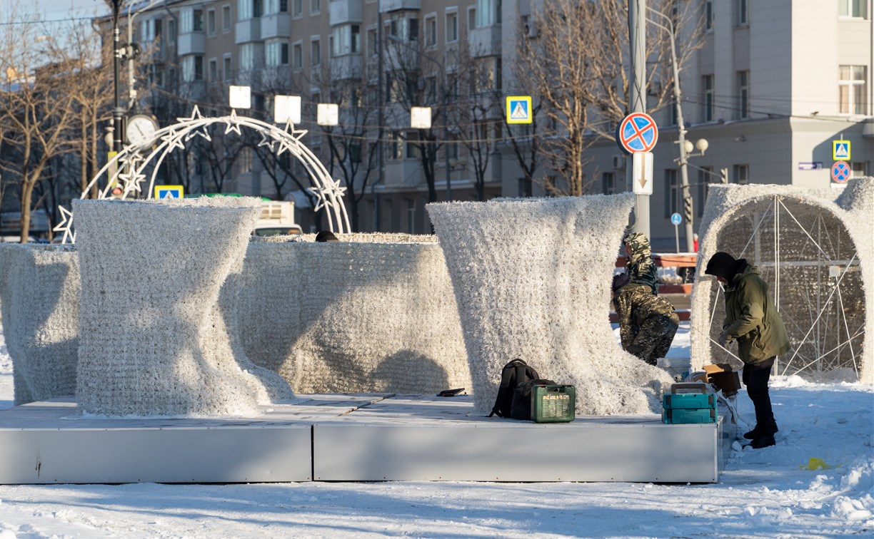 В Южно-Сахалинске полным ходом идут работы по созданию праздничной атмосферы. Сегодня, 4 декабря, на площади Ленина начался монтаж арт-объектов: масштабных фигур трёх медведей, полярной звезды и новогодней ели.
