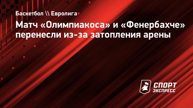 Матч регулярного чемпионата Евролиги между «Олимпиакосом» и «Фенербахче» перенесен из-за сильного дождя, сообщает пресс-служба турнира.