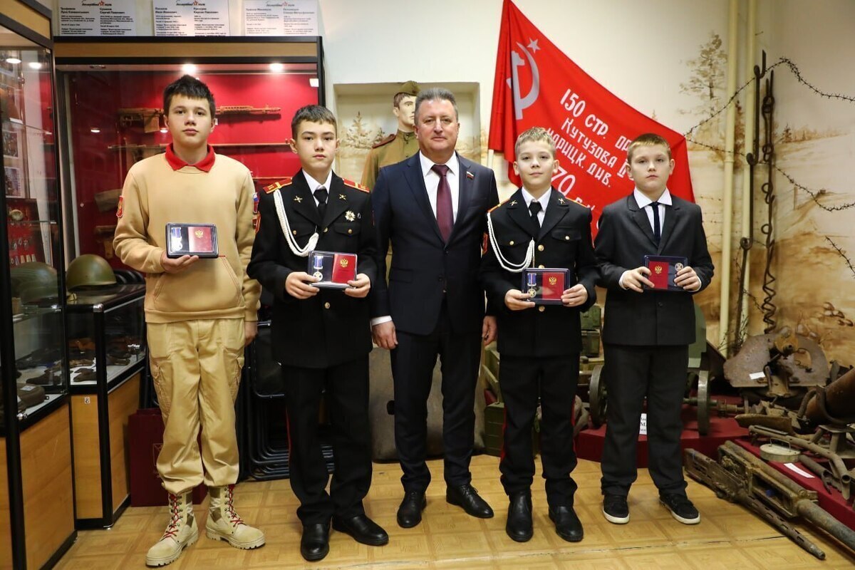 В музее Вологодского поискового отряда прошла торжественная церемония награждения юных героев Вологодской области. Четверо юношей получили медали Совета Федерации «За проявленное мужество». Награды вручал сенатор Совета Федерации Евгений Богомазов.