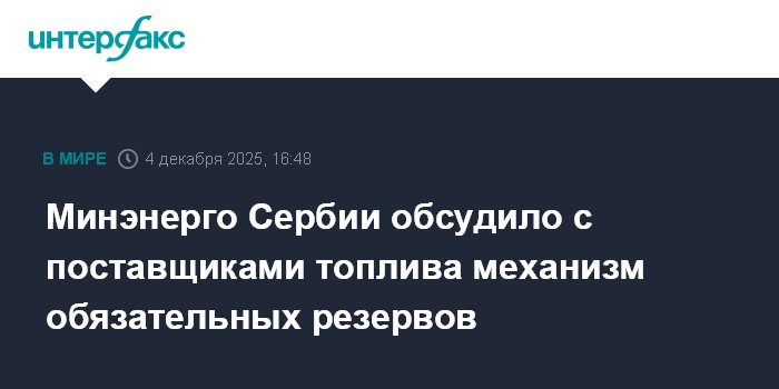 Москва. 4 декабря. INTERFAX.RU - Министр горнодобывающей промышленности и энергетики Сербии Дубравка Джедович Ханданович обсудила с представителями нефтяных компаний MOL Serbia, OMV Serbia, EKO Serbia и Knez Petrol, которые наряду с NIS являются крупнейшими поставщиками нефтепродуктов, вопросы обеспечения надежных поставок на внутренний рынок, говорится в сообщении министерства.