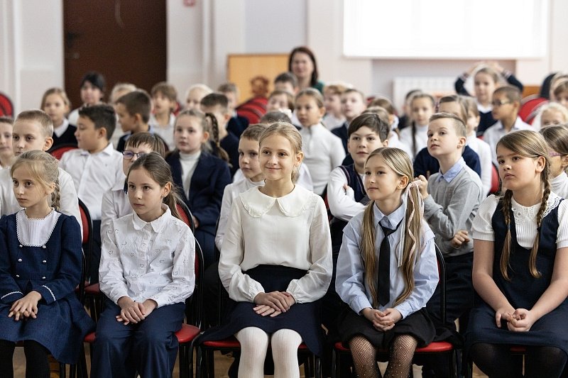 Константин Шестаков на открытии нового шахматного класса в школе № 9 Владивостока. Фото: Евгения Кубко, vlc.ru