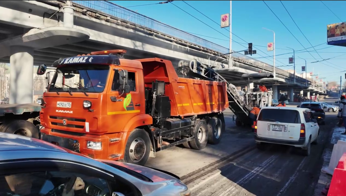 Кроме того, на многострадальном перекрёстке на выходных будут укладывать асфальт, так как ожидается достаточно тёплая для этого погода. Сейчас здесь снимают старое покрытие, из-за чего здесь образовались пробки.