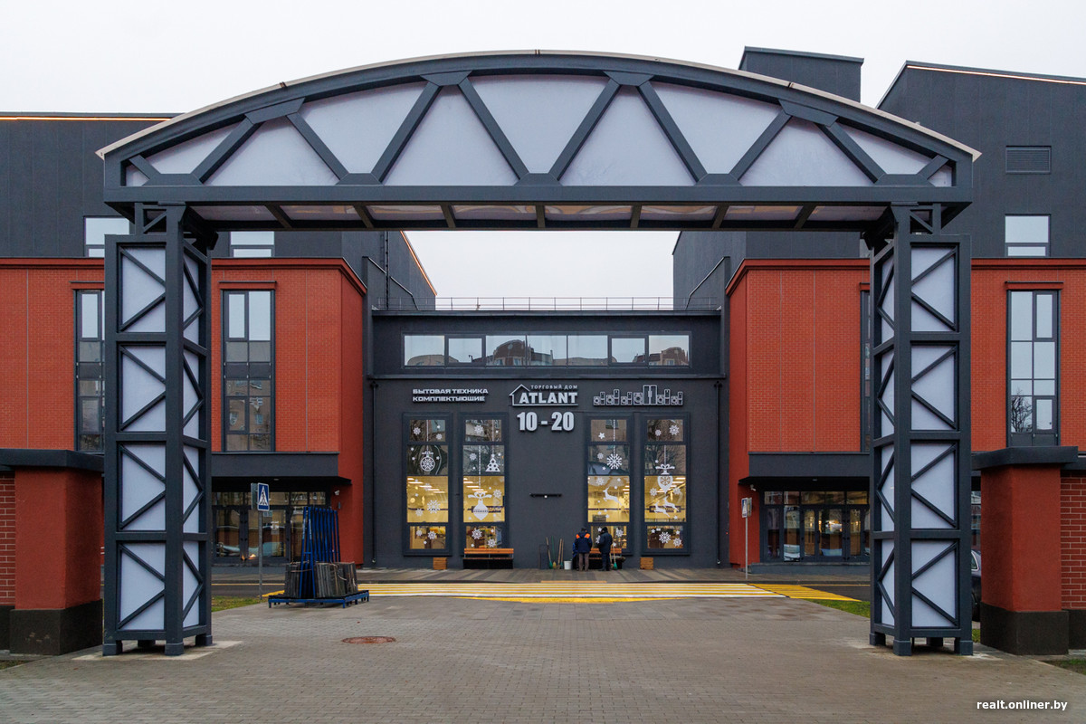 Проезжая по Партизанскому проспекту, нельзя не заметить ряд стильных зданий из красного кирпича, спрятанных за идентичным по стилистике забором. Ограждение прерывается торжественного вида арочными входами. Еще недавно на них висела заметная издалека надпись «Добро пожаловать», явно намекающая, что здесь рады всем желающим. Но что же внутри? Оказывается, далеко не все еще в курсе, что на территории бывшего Мотовелозавода и нынешнего Минского городского технопарка заработал целый квартал с кафе и магазинами. Первые арендаторы начали туда заезжать в сентябре, но новые объекты продолжают открываться до сих пор. Onlíner прогулялся вдоль длинного административно-торгового корпуса и заглянул почти в каждую дверь. Сумки, одежда, конфеты, выпечка, велосипеды и холодильники — что еще интересного тут предлагают?