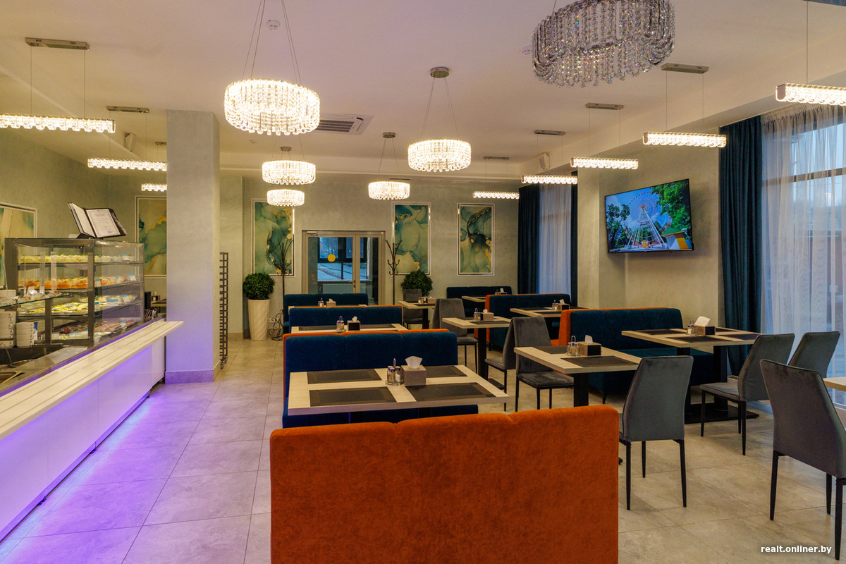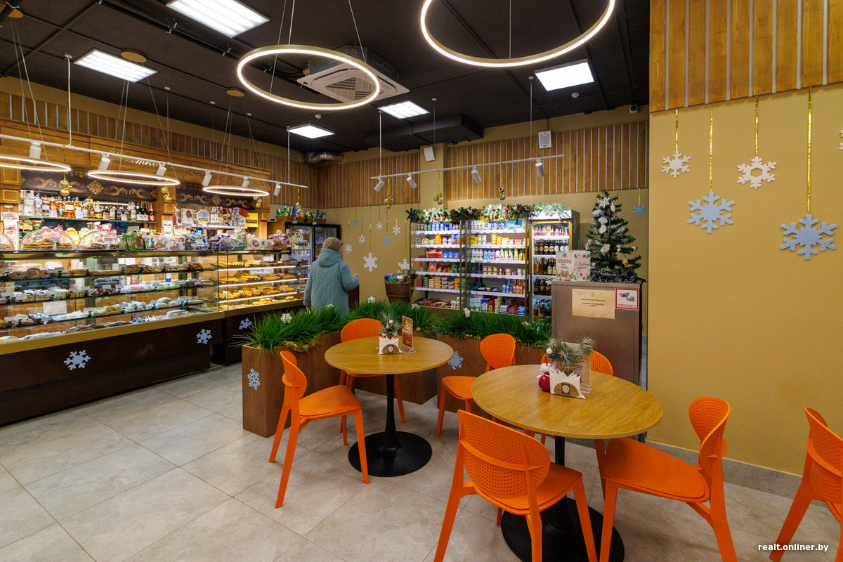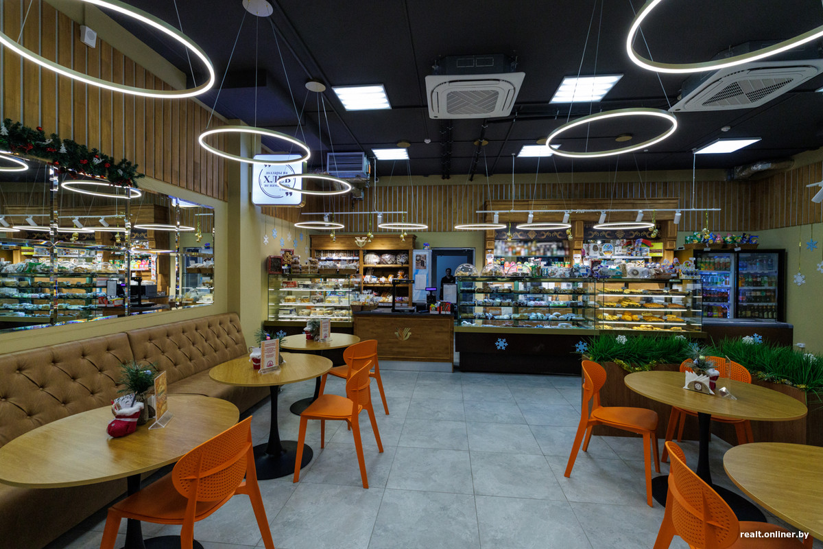 Еще одна локация с посадочными местами — кафе «Каравай» от «Минскхлебпрома». Похожих заведений от этого предприятия в Минске немало, но это выделяется своим современным интерьером.