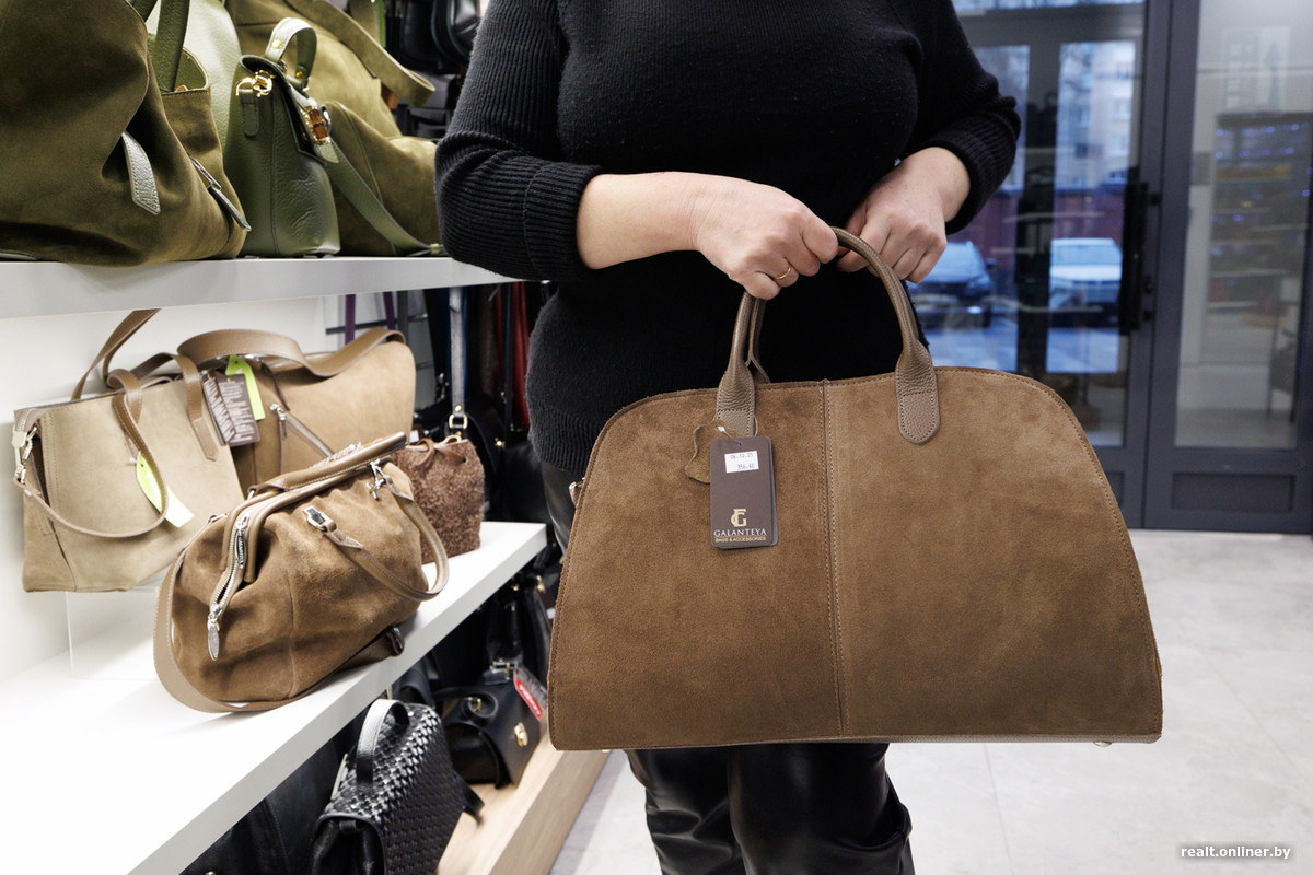 В магазине Galanteya традиционно все полки заставлены сумками всех цветов, фактур и стилей. Спрашиваем, какая модель самая популярная у белорусов? Консультант прикинула и ответила: «Большая и вместительная сумка типа шопера, в которую можно много чего уместить».