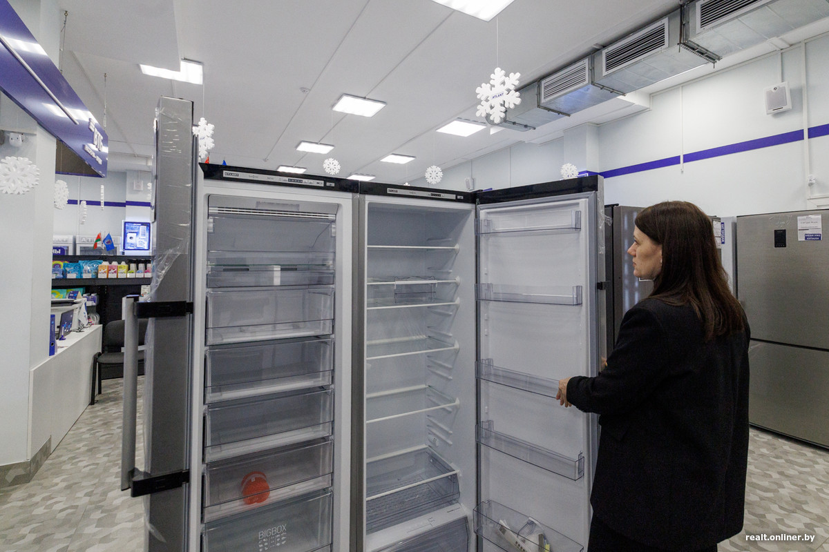 — Конечно, холодильники. Также пользуются популярностью модели с технологией Side by Side. Это холодильник и морозильник, соединенные между собой монтажными планками. Это вариант для большой семьи, для большого дома. Но их можно приобрести и отдельно.