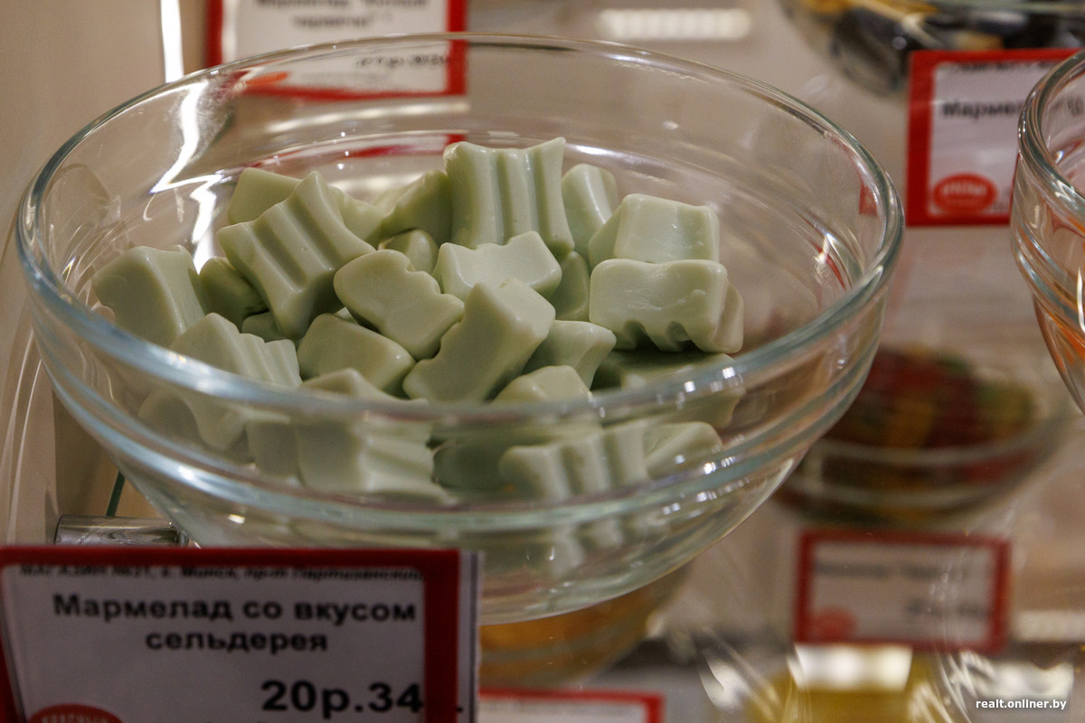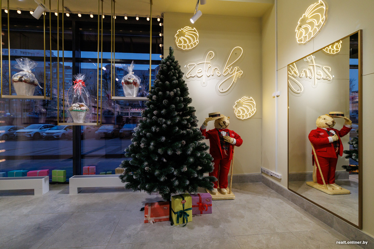 Недалеко от «Слодыча» работает еще один магазин со сладостями — «Красный пищевик», который открылся буквально на днях. Тут прям конфетное царство — сотни видов мармеладок, шоколадок и зефира. Так как бренд родом из Бобруйска, помещения решили украсить не только елкой, но и фигурой бобра.