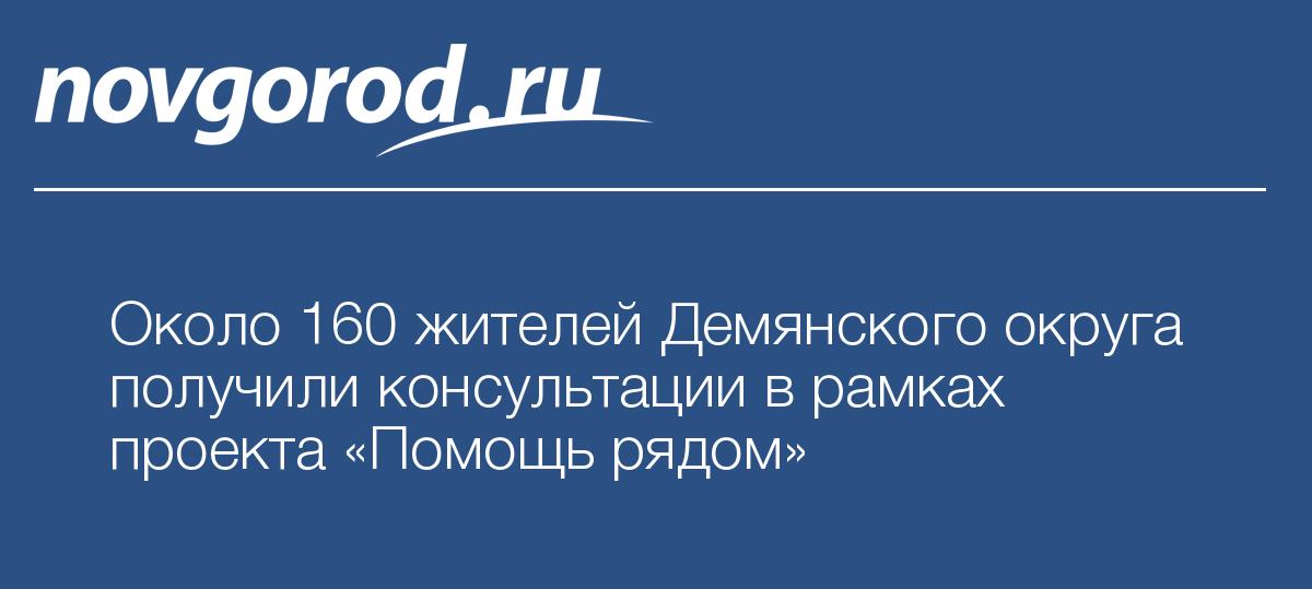 В среду, 3 декабря, специалисты губернаторского проекта «Помощь рядом» побывали в Демянске. Жители смогли получить консультации по вопросам социальной и медицинской помощи, трудоустройства и другим темам. Всего в мероприятиях проекта приняли участие около 160 жителей округа.