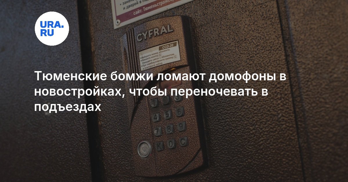 «Мы живем в новых микрорайонах заречной части Тюмени. В последнее время стали замечать, что домофон периодически ломается. Провели с соседями небольшое расследование и выяснили, что к нам зачастили бомжи, которые с огромной силой дергают дверь подъезда, чтобы попасть внутрь и переночевать», — рассказала агентству одна из жительниц Тюмени.