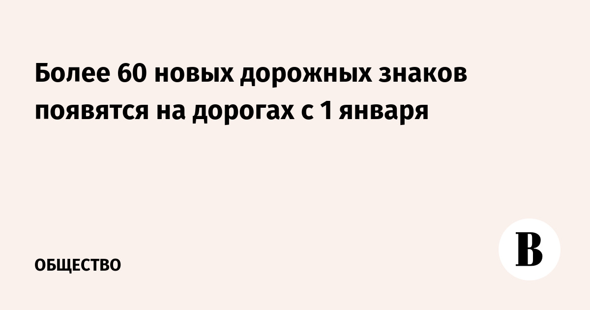 С 1 января на дорогах России планируется добавить более 60 новых дорожных знаков и табличек, передает «РИА Новости»