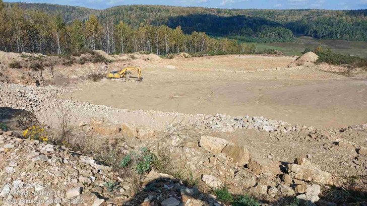 На площади 1,79 га ведётся добыча природного камня. Инспекторы установили, что плодородный слой почвы полностью снят и не складирован, что является нарушением природоохранных требований. Земельный участок с кадастровым номером 02:04:071401:111 не переведён в категорию земель промышленности, а значит, проведение добычных работ здесь незаконно.