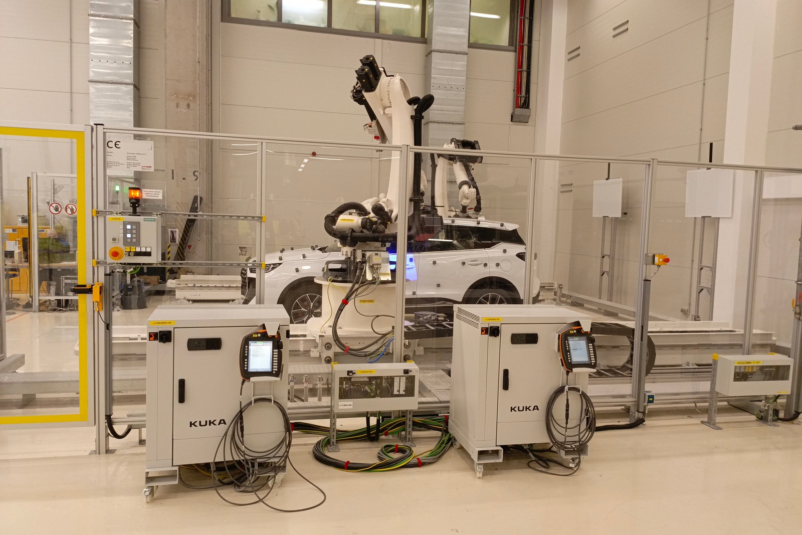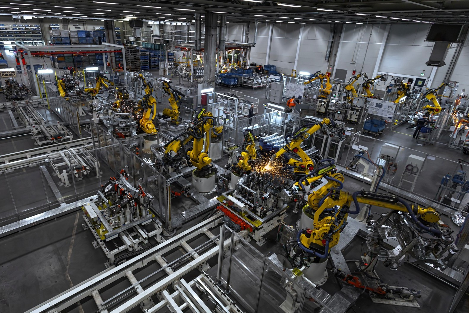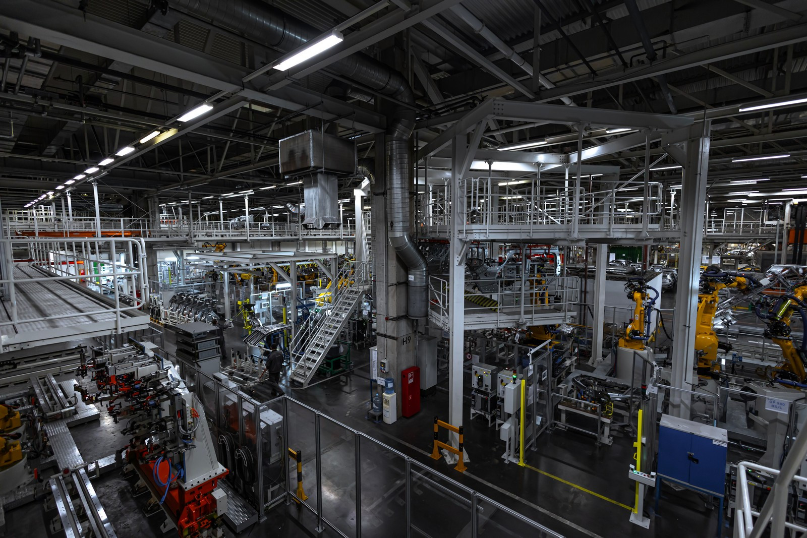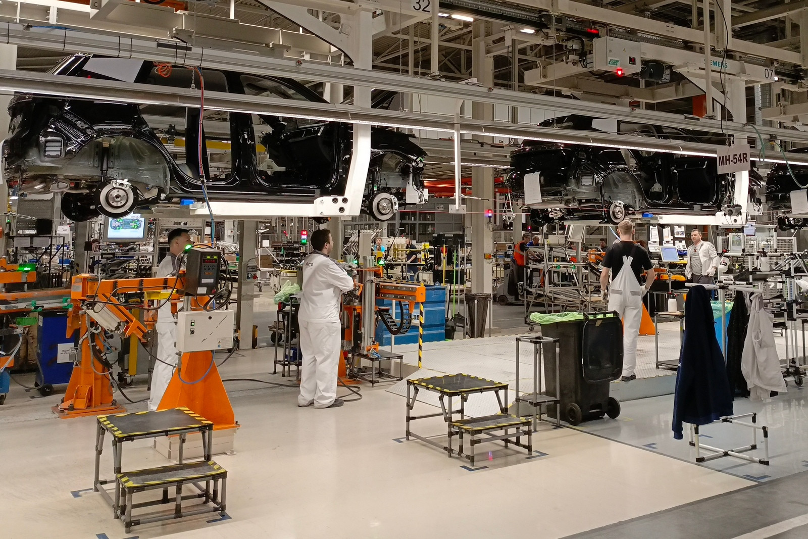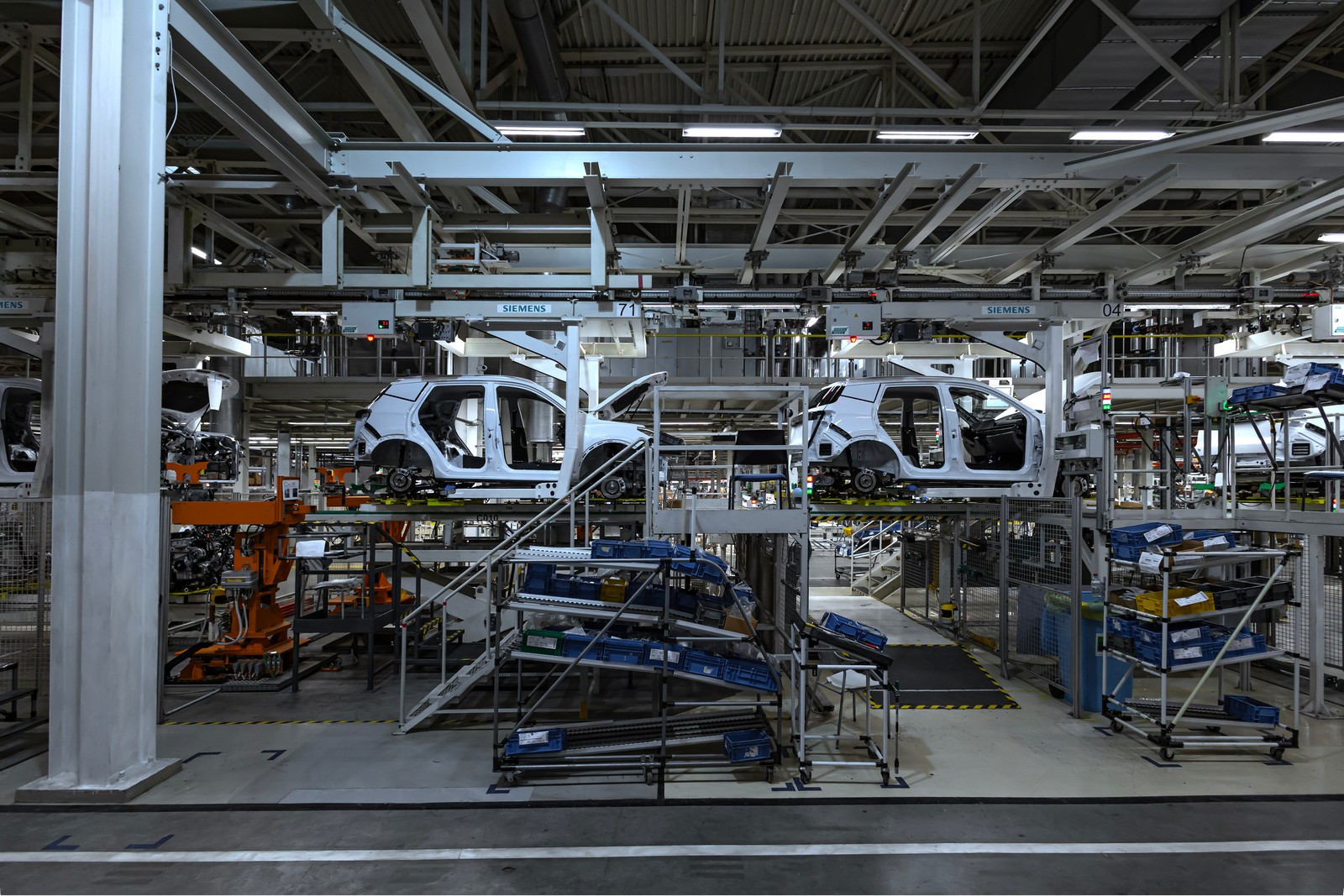 Сегодня в цехах сварки общей площадью почти 72 тысячи квадратных метров трудятся 332 робота, которые наносят порядка трех метров сварных швов на каждый кузов. Помимо этого, в арсенале производства 30 клеевых станций, которые обеспечивают нанесение 51 метра клеевых соединений. Чтобы связать все эти посты в единую линию, сформирован конвейер длиной 3300 метров.