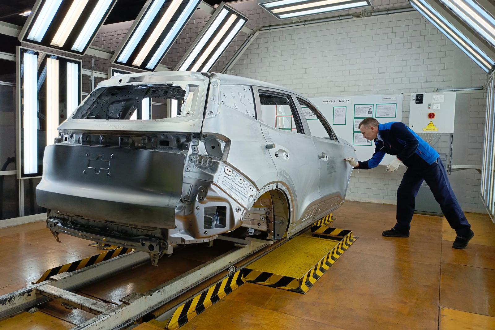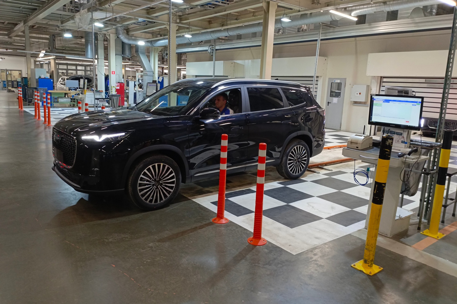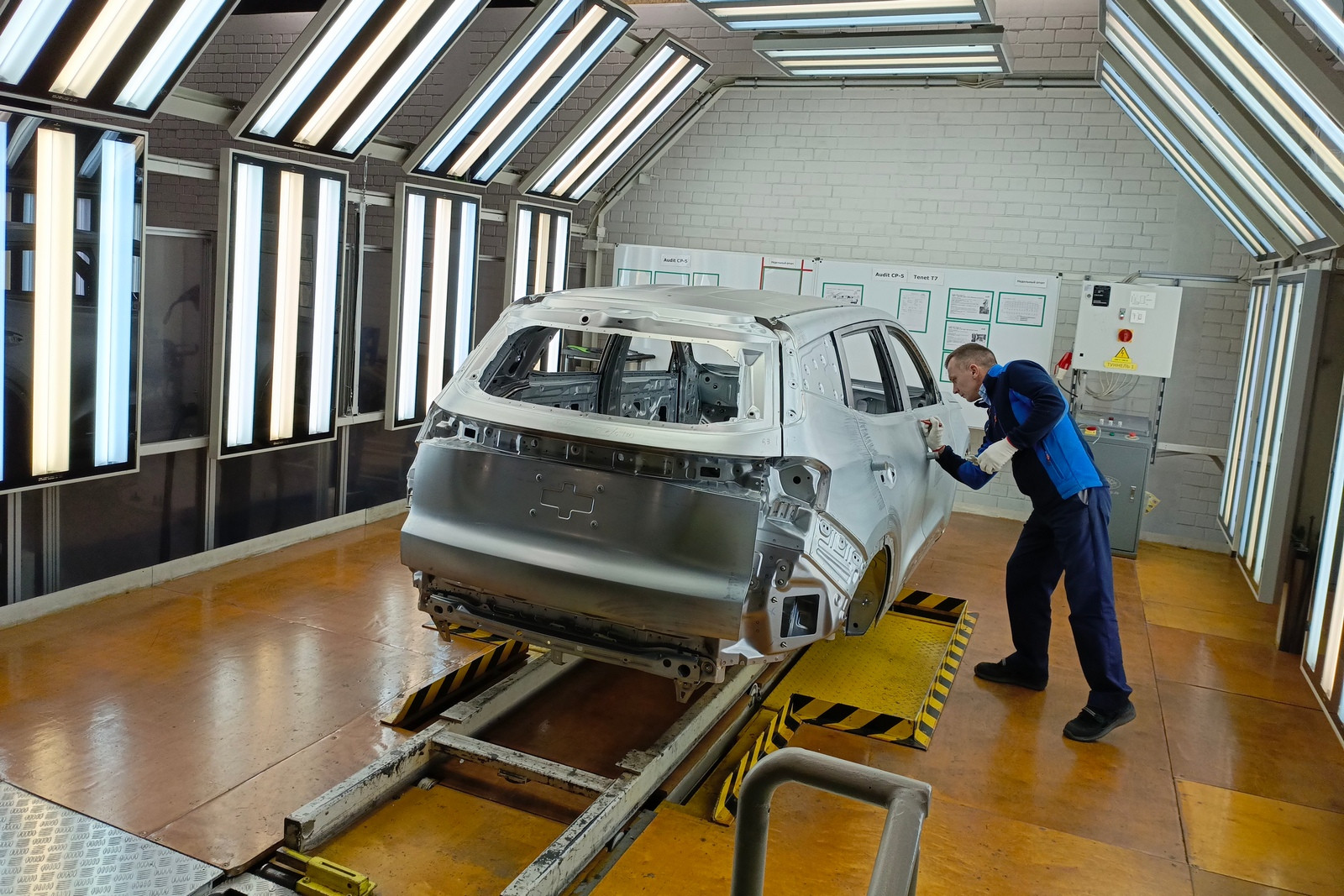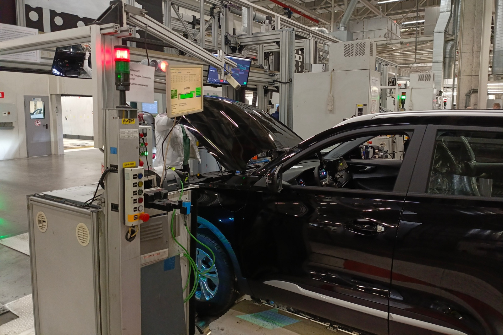 Предусмотрены посты проверки электрики и электроники, контроля моментов затяжек, аудита моторного отсека, аудита днища, аудита подвески на вибростенде и прочего контроля. На специальных, уже упоминавшихся тактильных измерительных машинах, которых в распоряжении завода пять штук, контролируется геометрия сваренных кузовов (с навесными деталями или без) или подсборок.