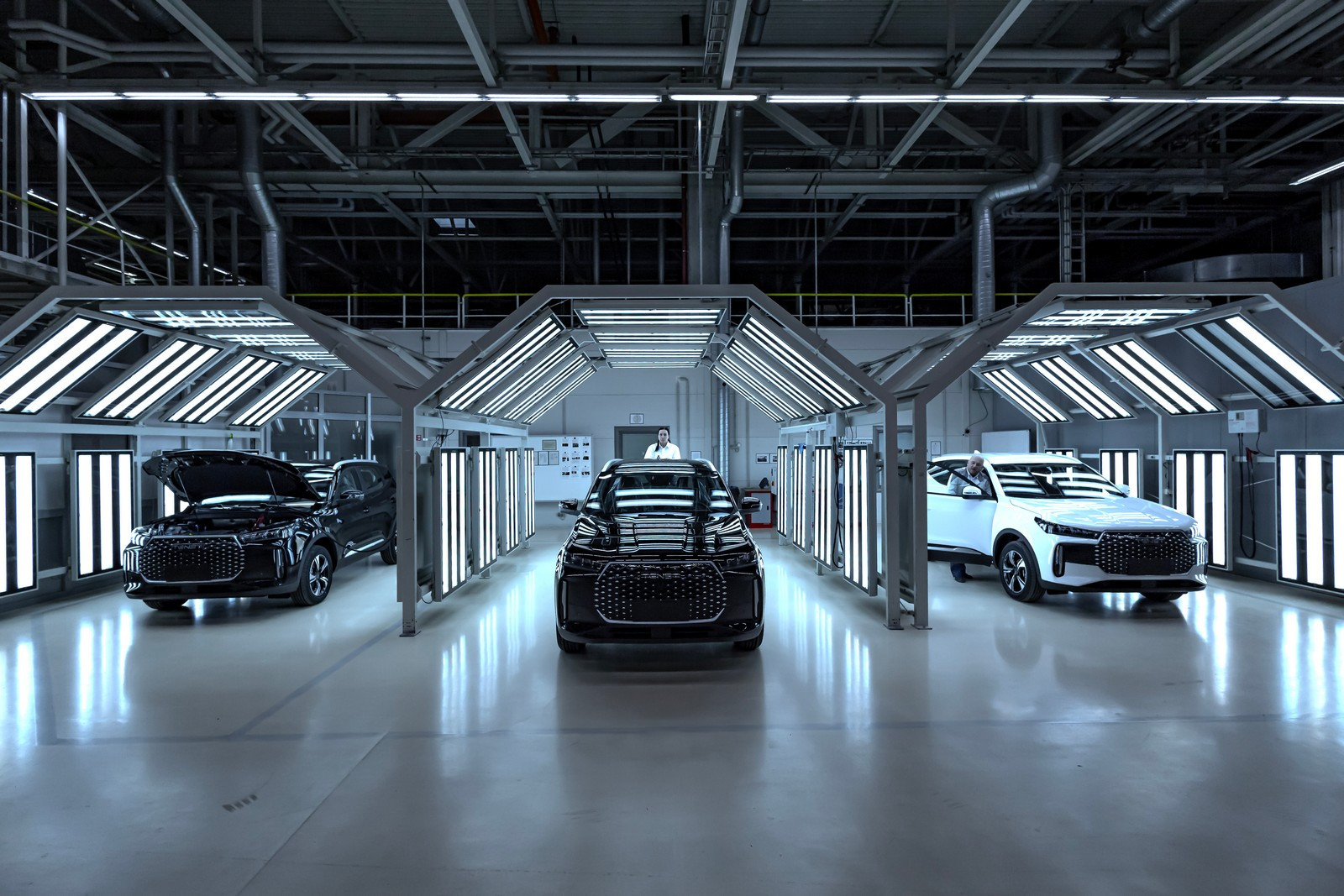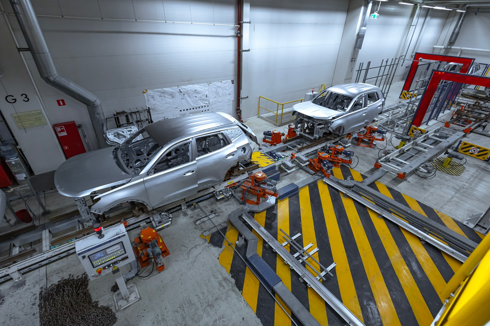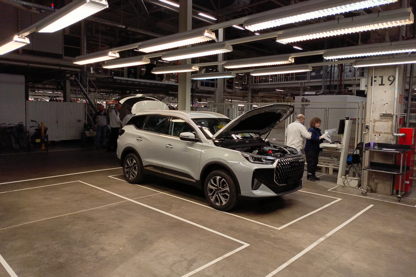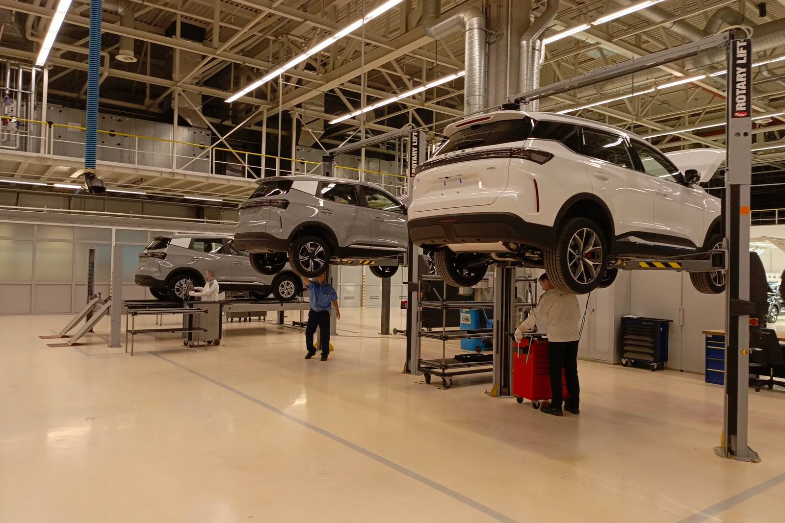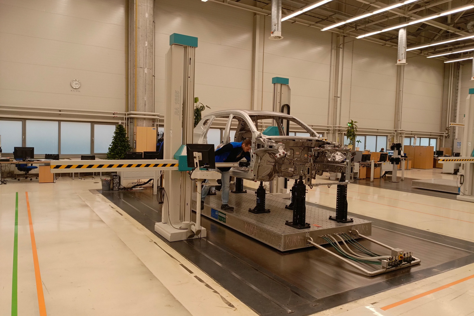 Предусмотрены посты проверки электрики и электроники, контроля моментов затяжек, аудита моторного отсека, аудита днища, аудита подвески на вибростенде и прочего контроля. На специальных, уже упоминавшихся тактильных измерительных машинах, которых в распоряжении завода пять штук, контролируется геометрия сваренных кузовов (с навесными деталями или без) или подсборок.