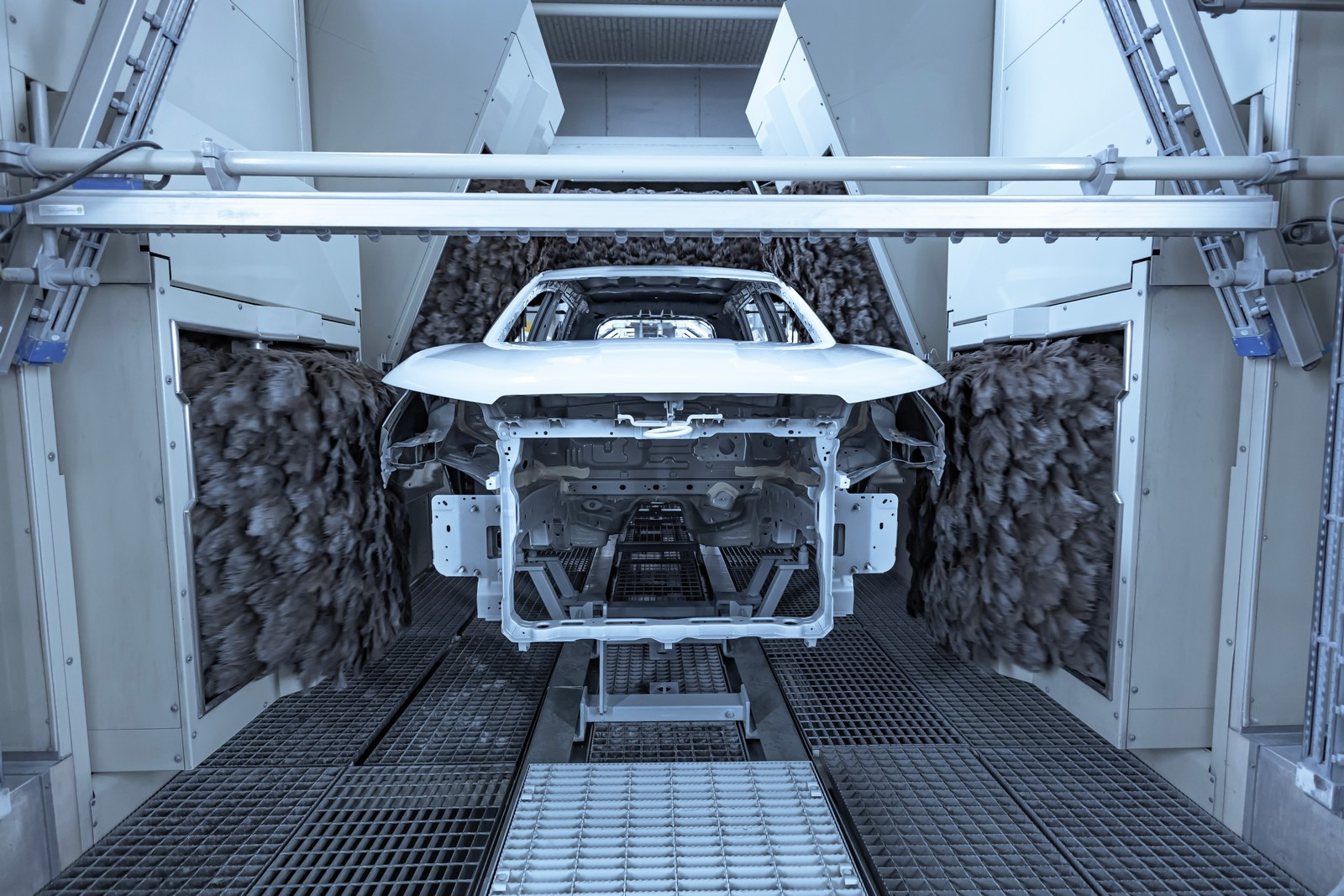 Ну а для того, чтобы наносить базовый слой эмалевой краски поверх грунта на идеально чистое покрытие и избежать возникновения даже мизерных дефектов, кузов в ходе подготовки поверхности проходит через участок с кодовым названием «эму». И это не аббревиатура: на этом участке он очищается специальными машинами, использующими в качестве рабочего органа перья экзотической птицы.