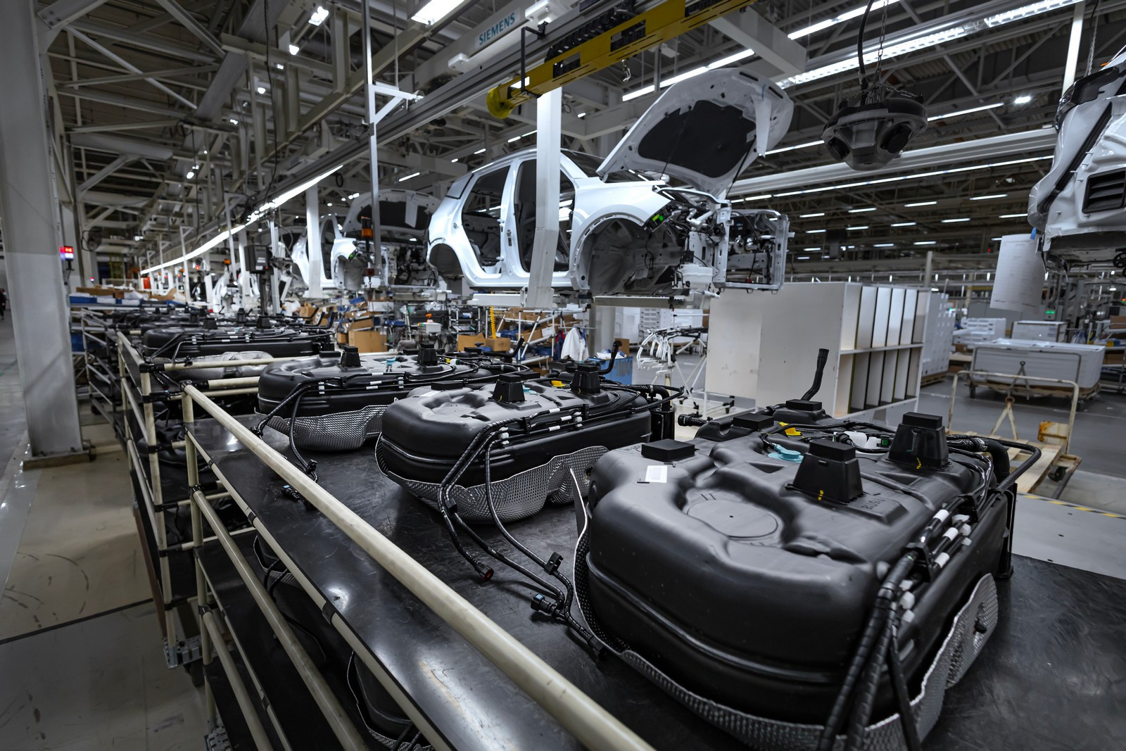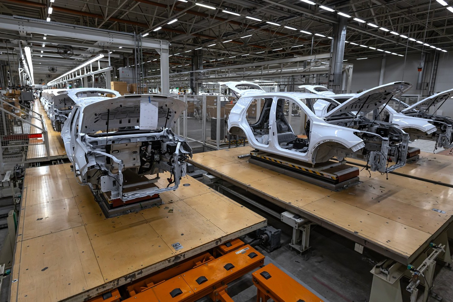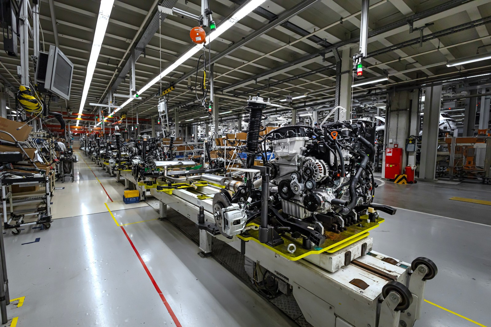 Площадь цеха сборки — почти 58 тысяч квадратных метров. Поклонники футбола без труда определят, что это чуть больше восьми футбольных полей. Играть в эту благородную игру тут никто не собирается, но темп действий соответствующий.
