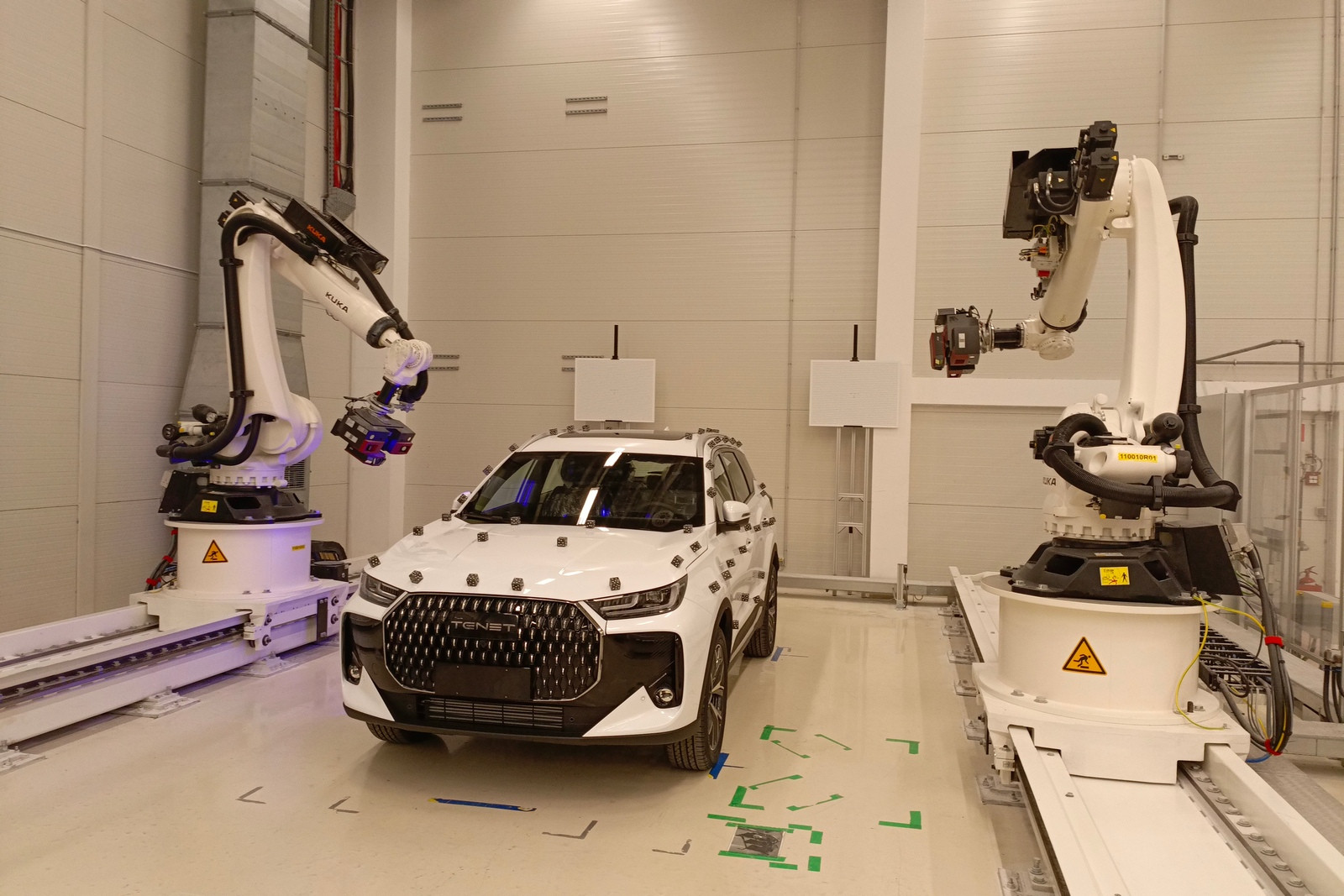 На двуручной оптической измерительной машине Kuka выполняется полный анализ качества сборки автомобиля — зазоров, перепадов и прочих параметров. Все измерения и проверки проводятся в соответствии с заранее формируемым планом в зависимости от актуальных производственных программ.