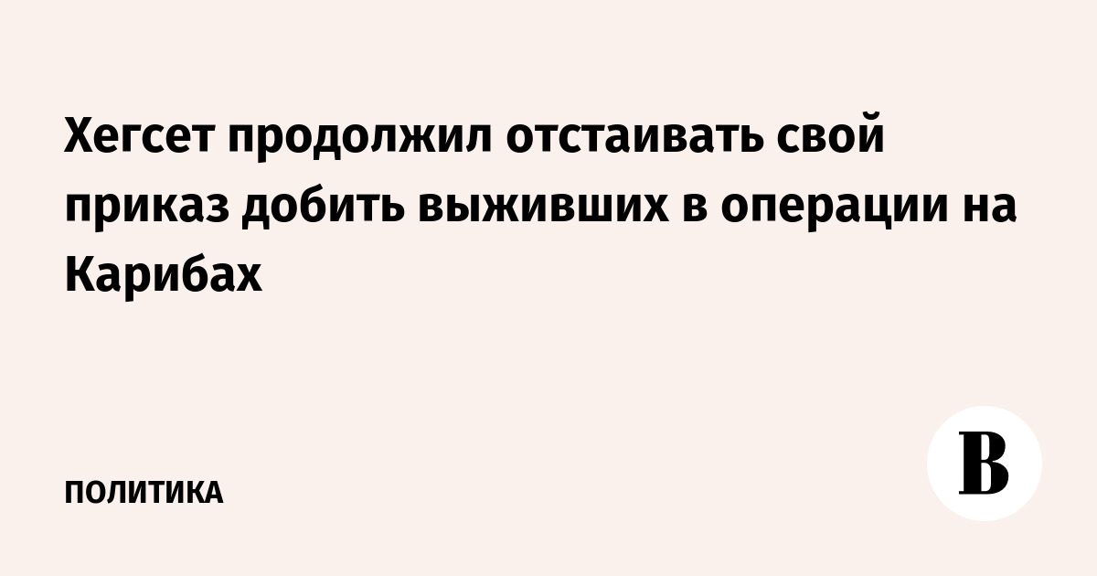 Министр обороны США Пит Хегсет заявил, что полностью поддерживает удар по судам, предположительно перевозившим наркотики, у побережья Венесуэлы и сделал бы тот же выбор, что и адмирал Фрэнк Брэдли. Его заявления вызвали обвинения в возможных военных преступлениях и привлекли двухпартийное внимание к операции, пишет Bloomberg.