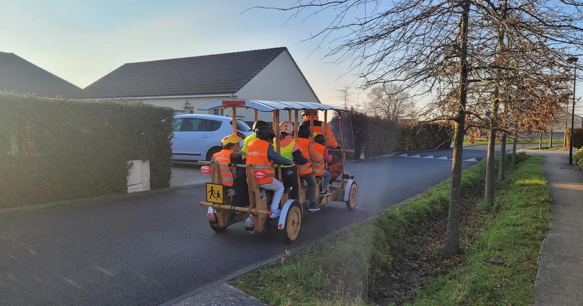 Dans la petite commune normande d’Heudebouville (Eure), les enfants n’ont jamais été aussi contents d’aller à l’école depuis l’arrivée du S’Cool bus. Chaque matin, à 7 h 45, ce vélo collectif à assistance électrique vient chercher à domicile huit d’entre eux. Accompagnés d’un chauffeur, ces écoliers du CE1 au CM2 pédalent ensemble sur quelques centaines de mètres jusqu’à leur établissement. Le soir, rebelote : ils sont redéposés chez eux. « Les bénéficiaires sont très heureux. Le S’Cool bus est rempli toute l’année et ça fait des envieux ! », confie Hubert Zoutu, maire du village de 800 habitants, situé près de Louviers.