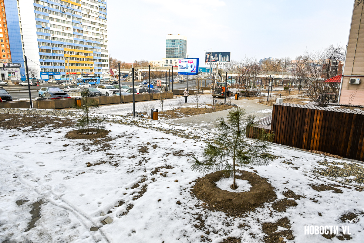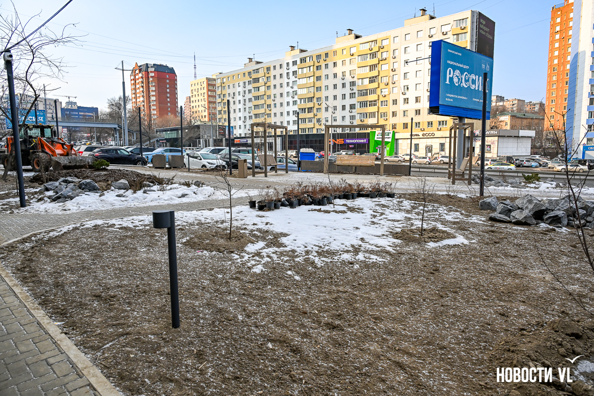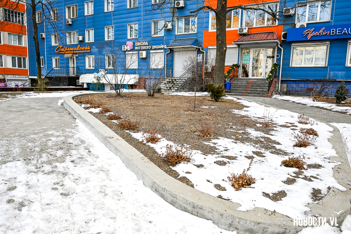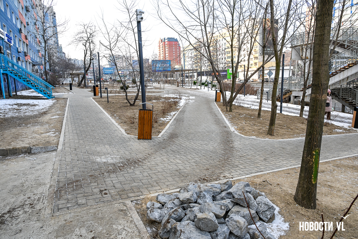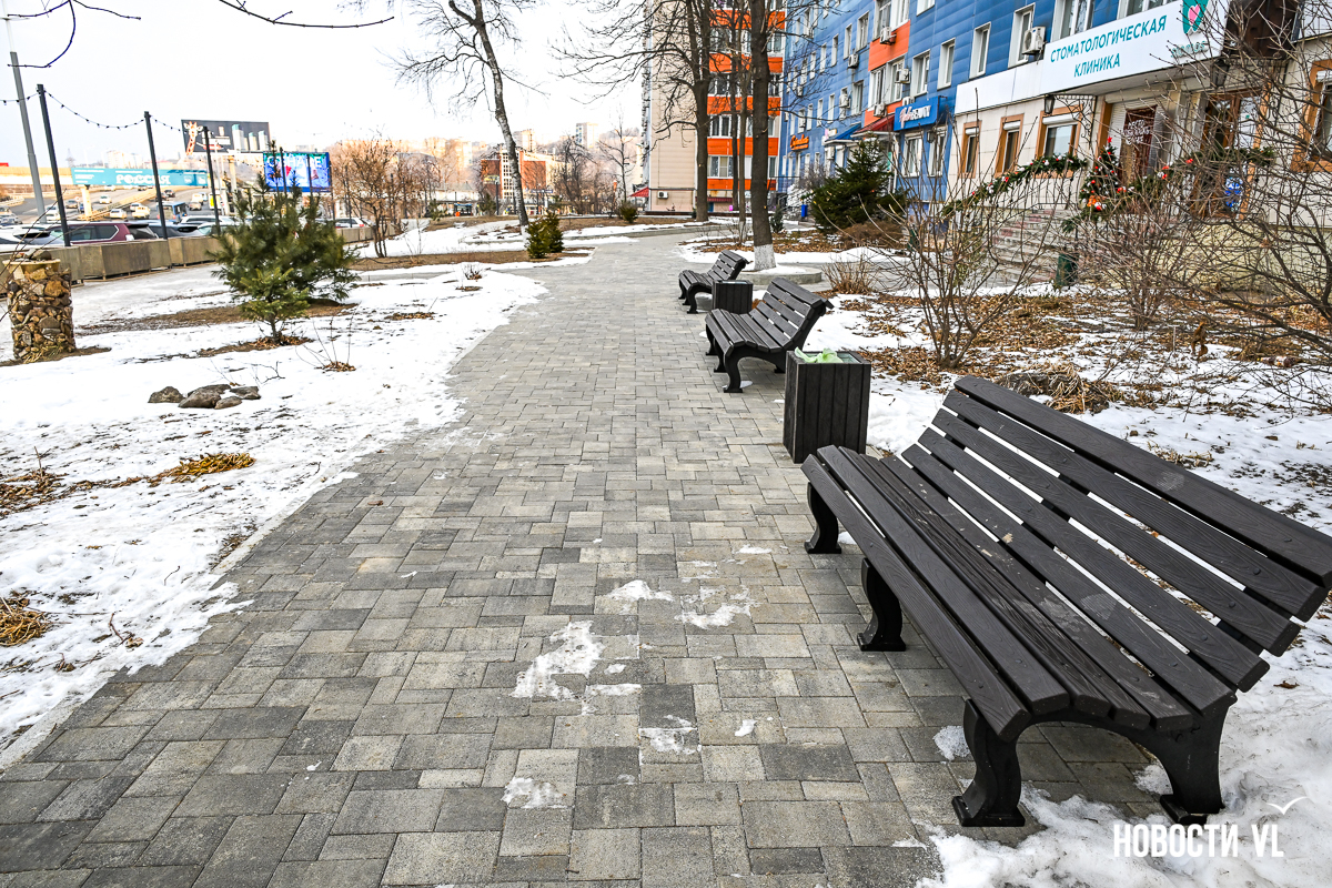 Ещё возле Некрасовской, 96 сделали новые тротуары из брусчатки, клумбы с бордюрным ограждением из бетона, высадили хвойные деревья, установили скамейки и урны из переработанного пластика, демонтировали две рекламные конструкции (остались только основания столбов). В целом эта часть единого общественного пространства выглядит более завершённой, чем сквер около 98-го дома. В пресс-службе администрации Владивостока также уточнили, что со стороны дворового фасада в арке между 96-м и 98-м домами были реконструированы лестницы – эти работы были проведены благодаря победе в конкурсе ТОСов.