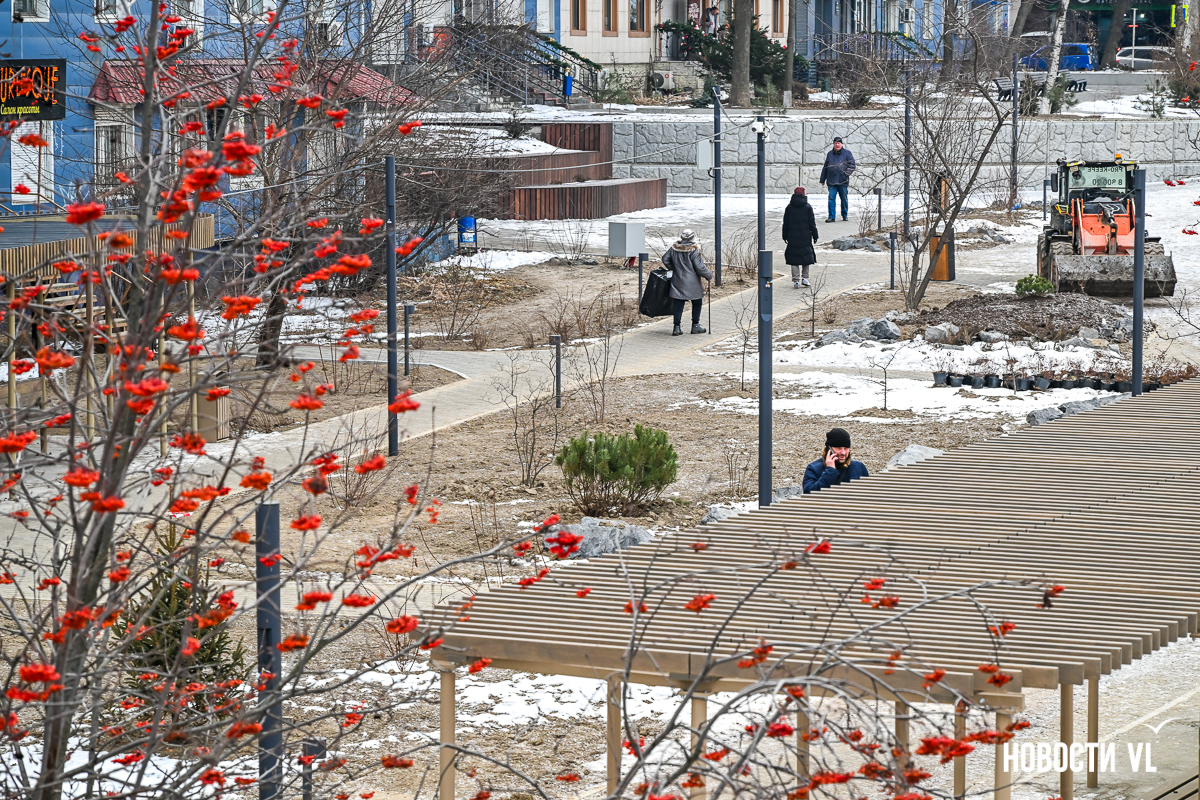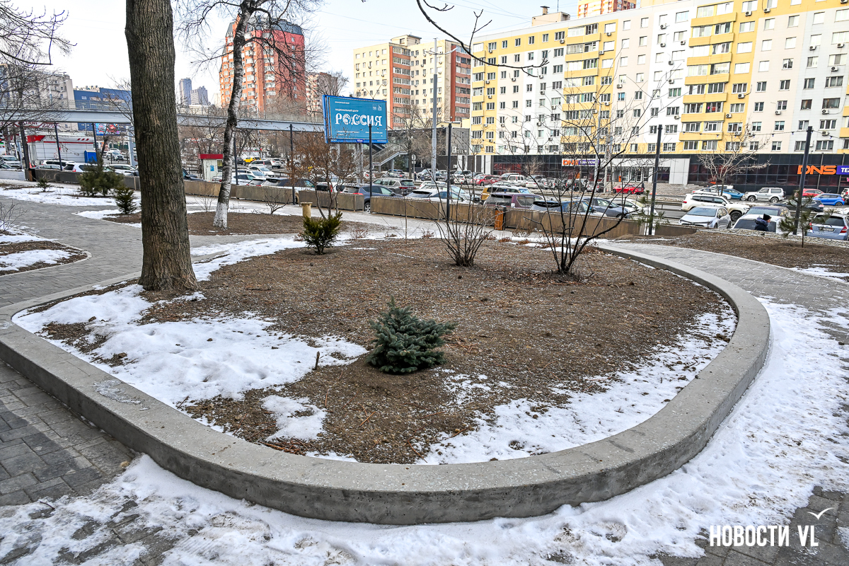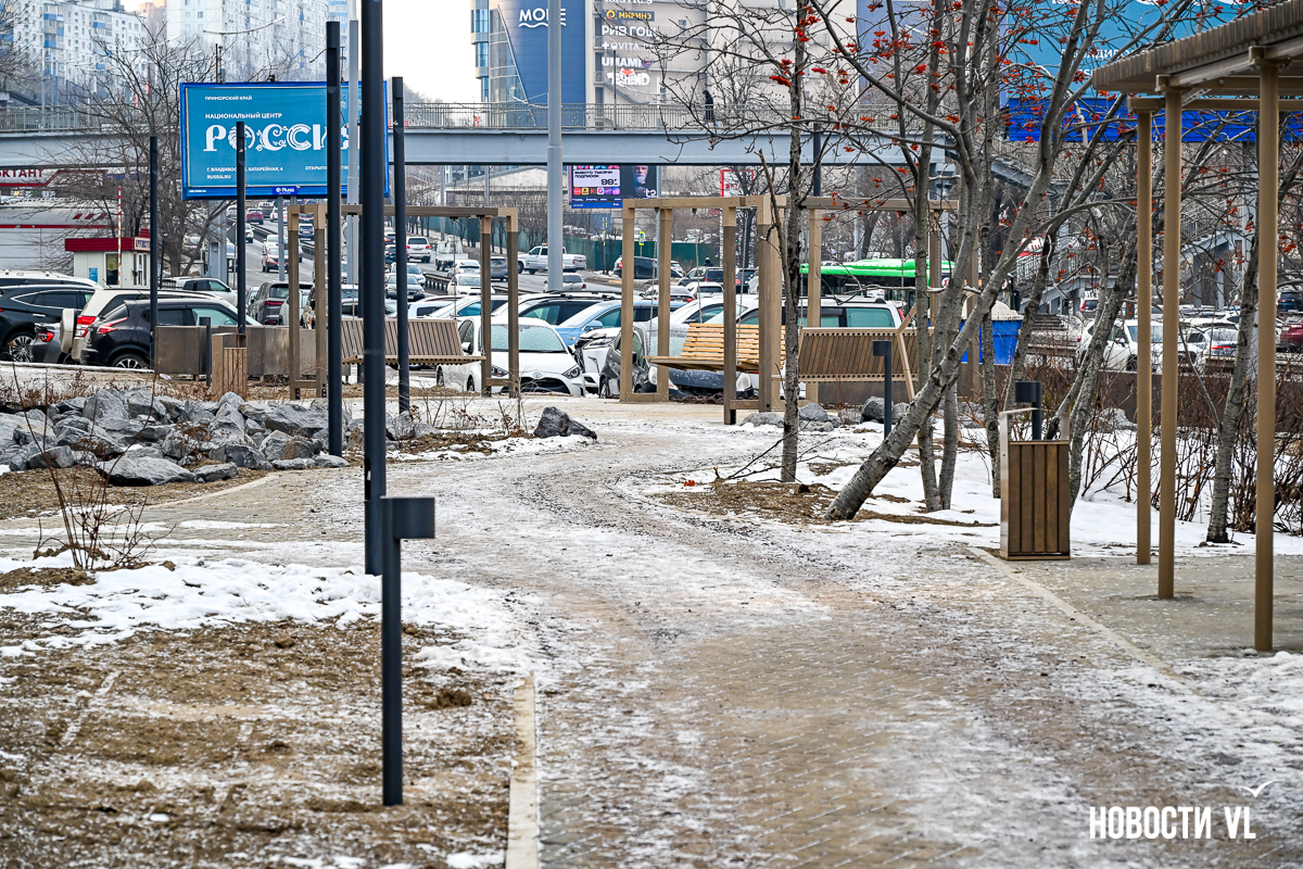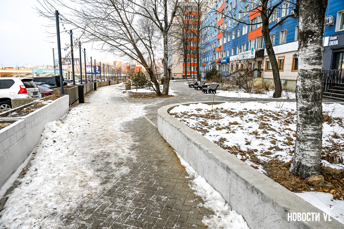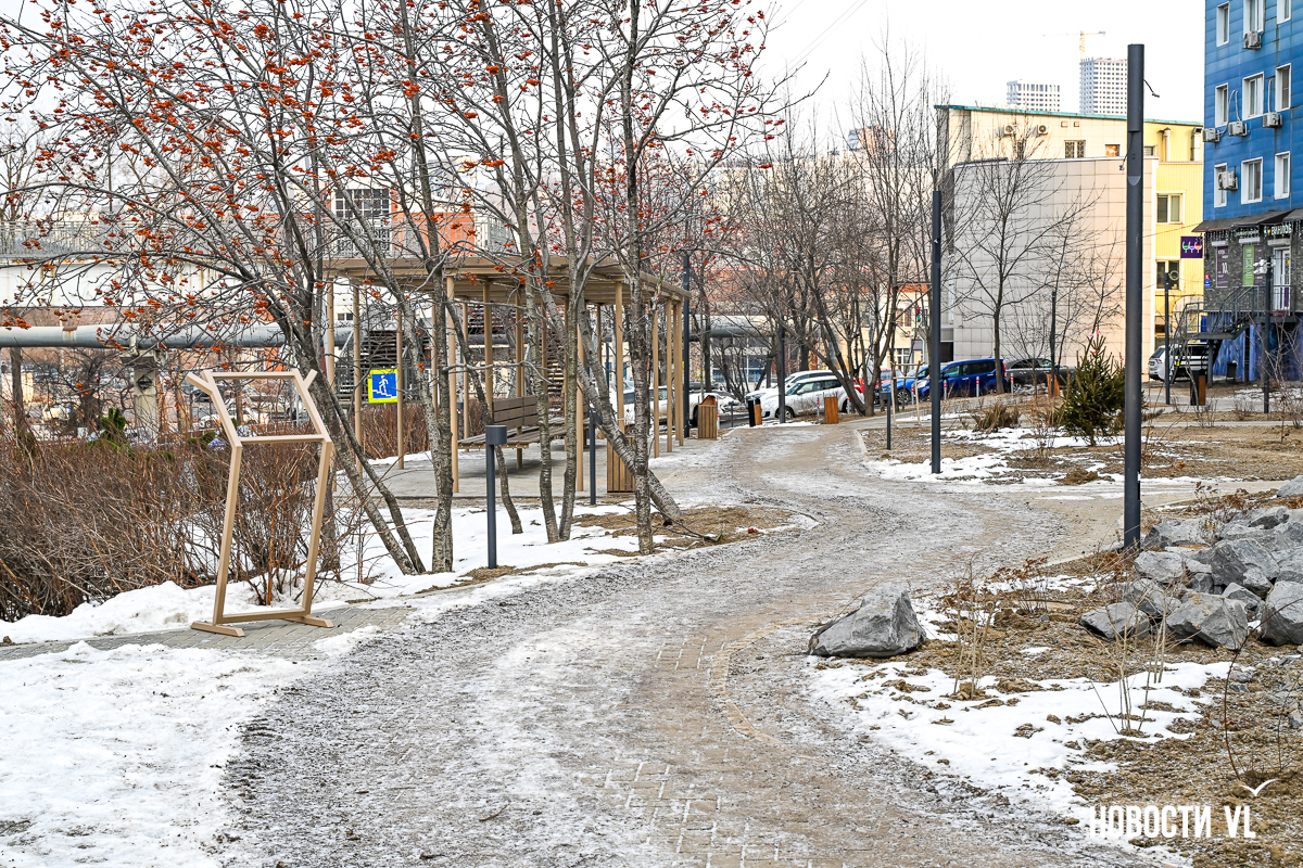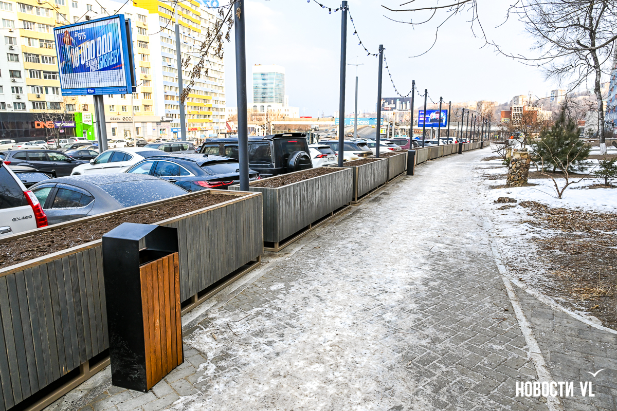 Ещё возле Некрасовской, 96 сделали новые тротуары из брусчатки, клумбы с бордюрным ограждением из бетона, высадили хвойные деревья, установили скамейки и урны из переработанного пластика, демонтировали две рекламные конструкции (остались только основания столбов). В целом эта часть единого общественного пространства выглядит более завершённой, чем сквер около 98-го дома. В пресс-службе администрации Владивостока также уточнили, что со стороны дворового фасада в арке между 96-м и 98-м домами были реконструированы лестницы – эти работы были проведены благодаря победе в конкурсе ТОСов.